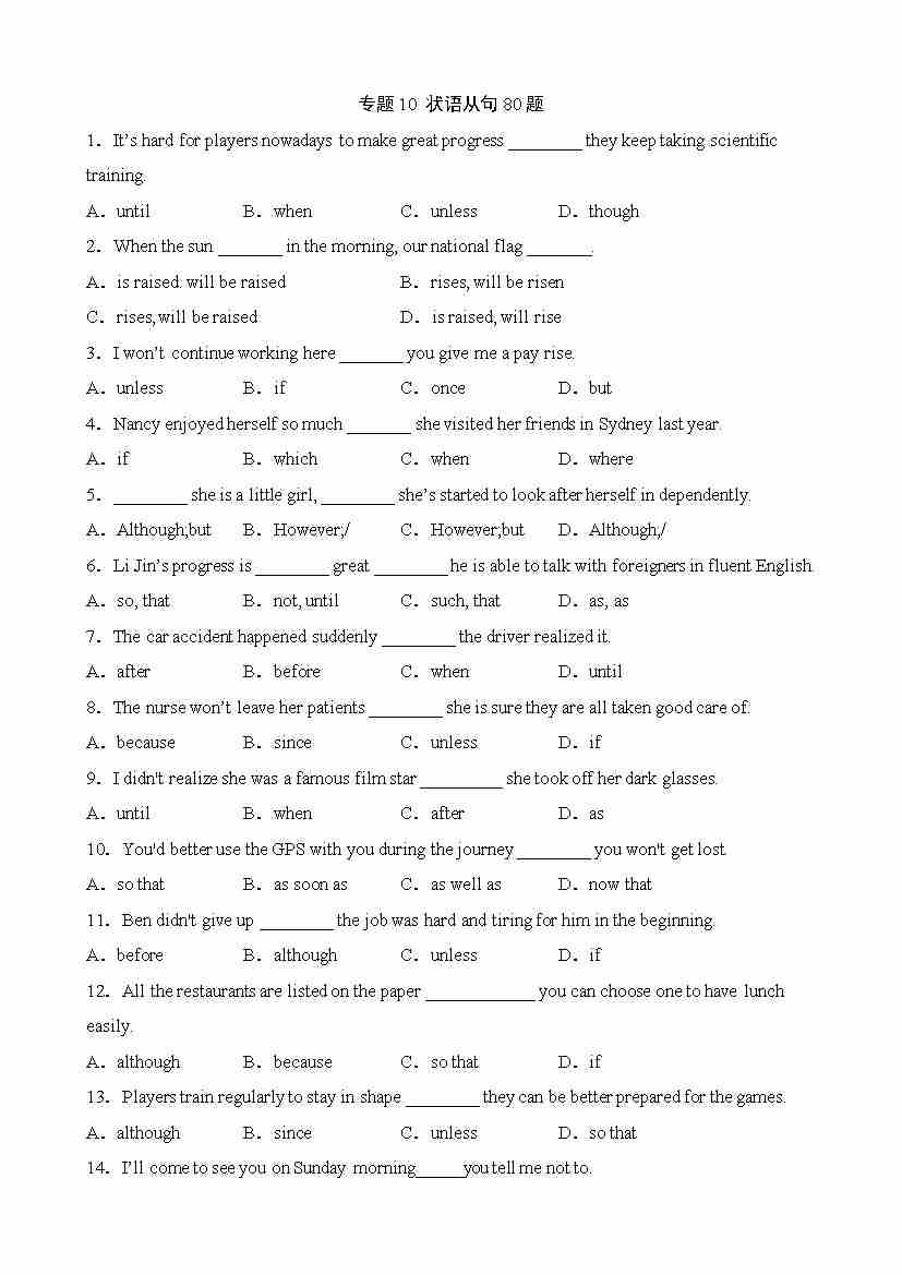 专题10 状语从句80题