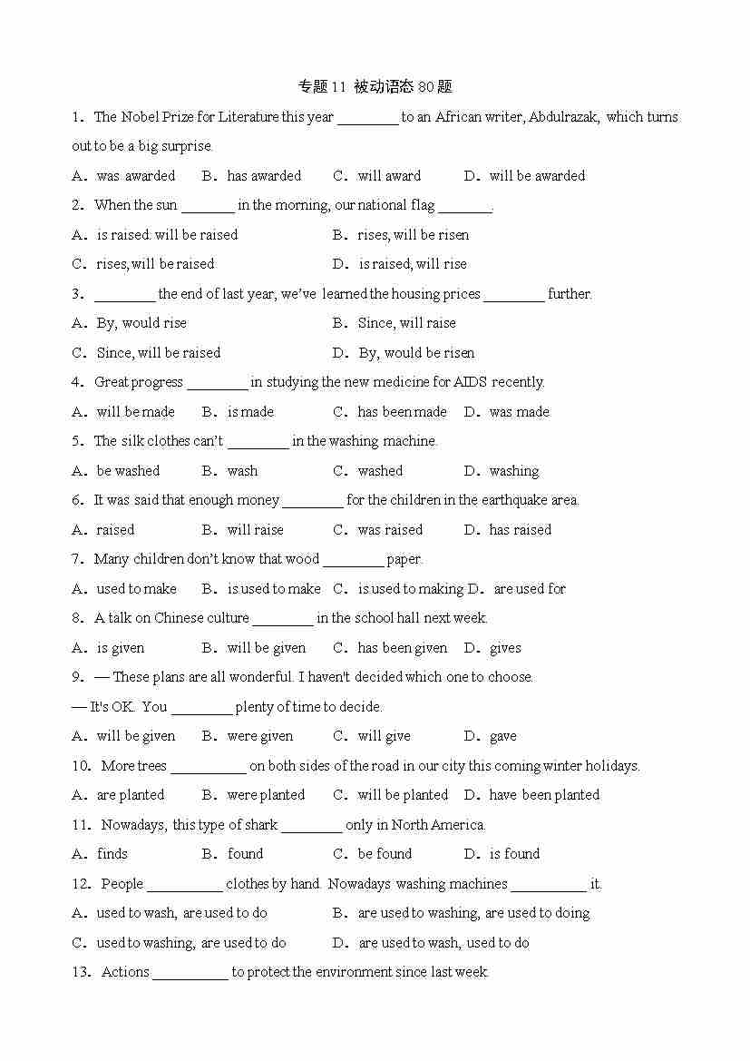 专题11 被动语态80题