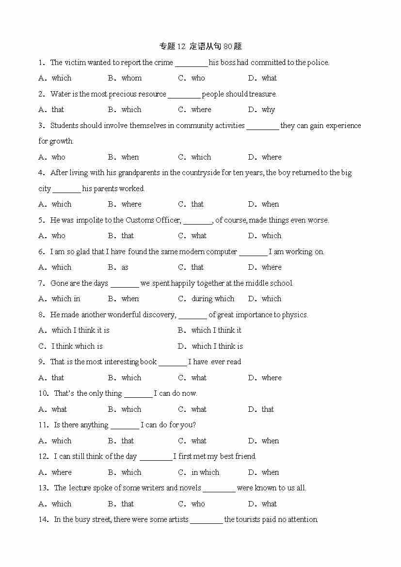 专题12 定语从句80题