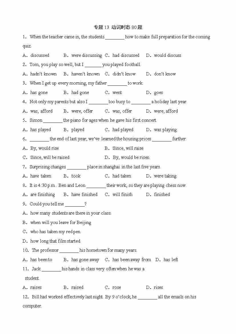 专题13 动词时态80题