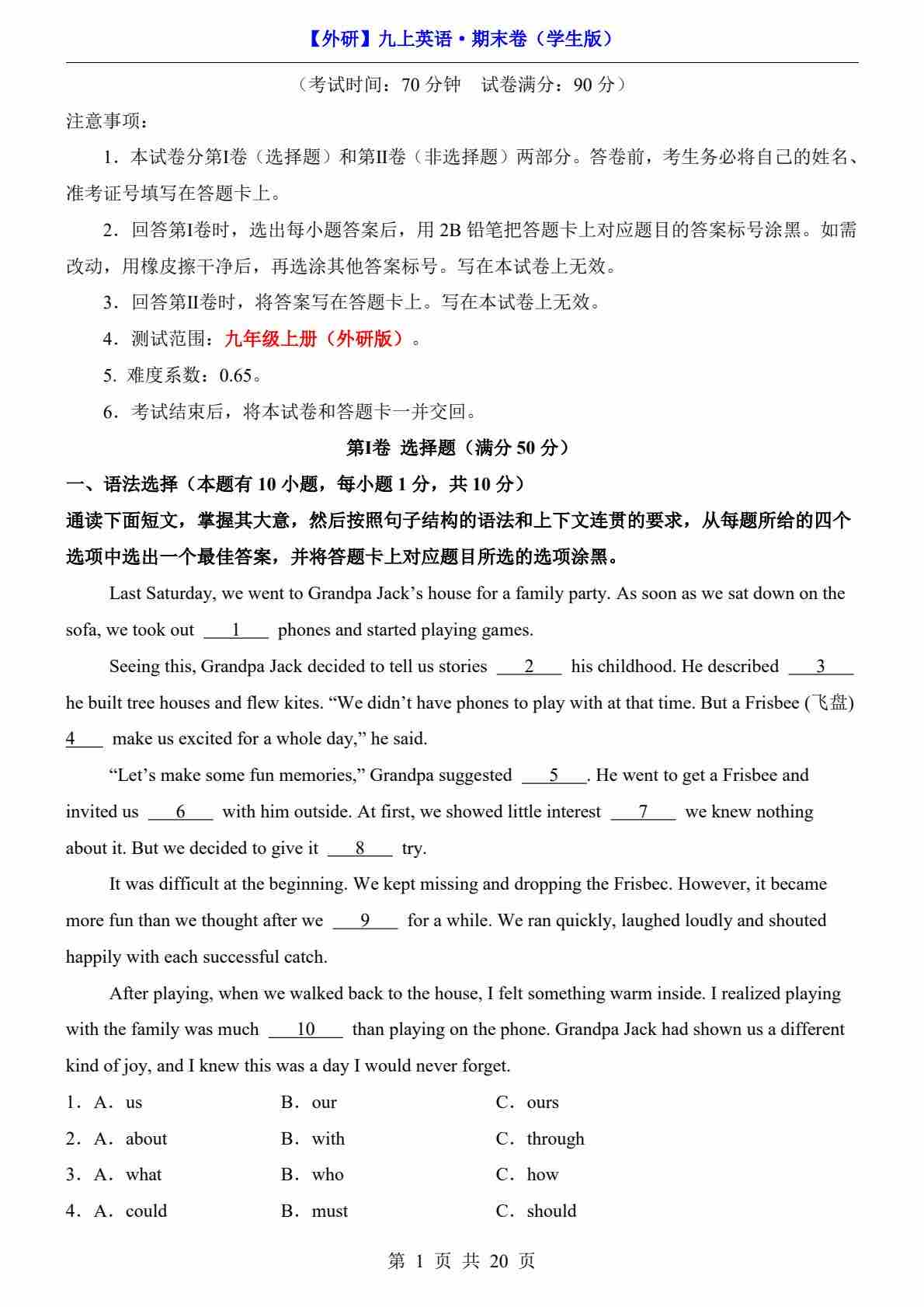 【外研】9上英语期末卷【9上全册】