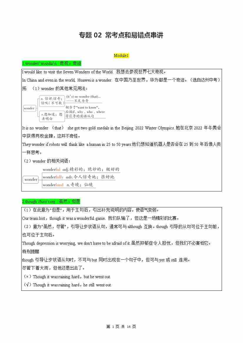 专题02 常考点和易错点串讲【考点清单】(记忆版)
