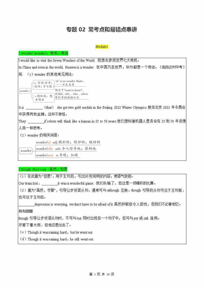 专题02 常考点和易错点串讲【考点清单】(默写版)