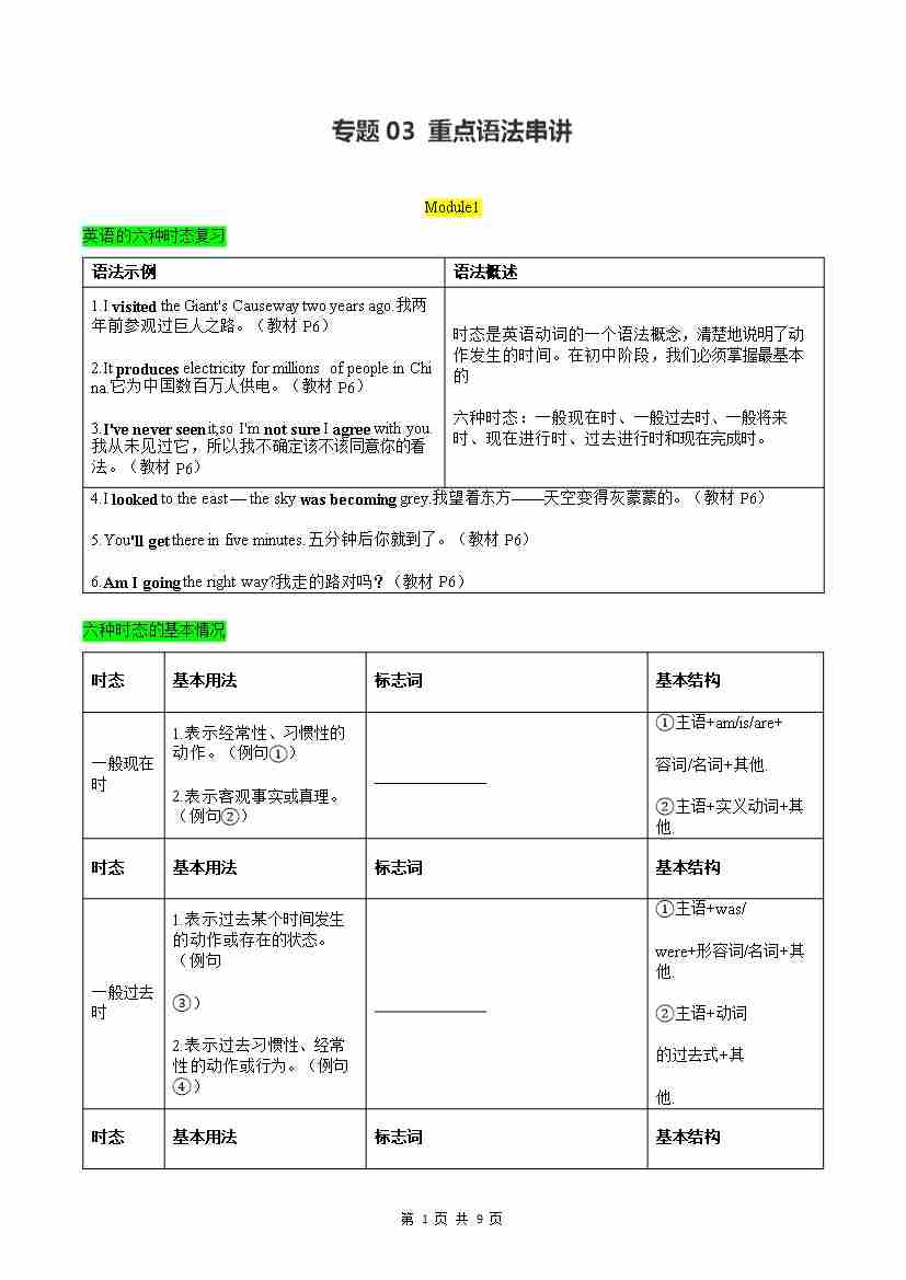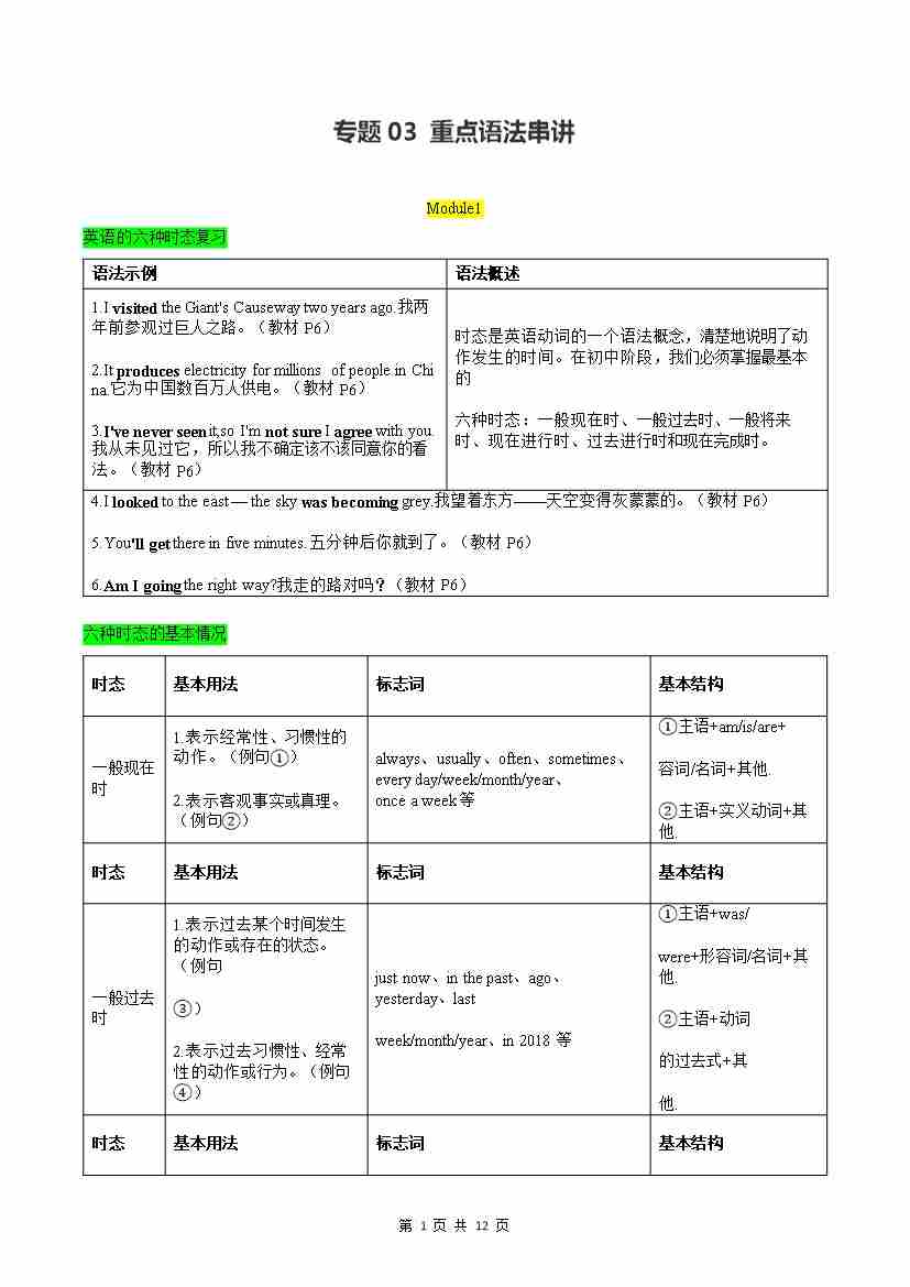 专题03 重点语法串讲【考点清单】(记忆版)