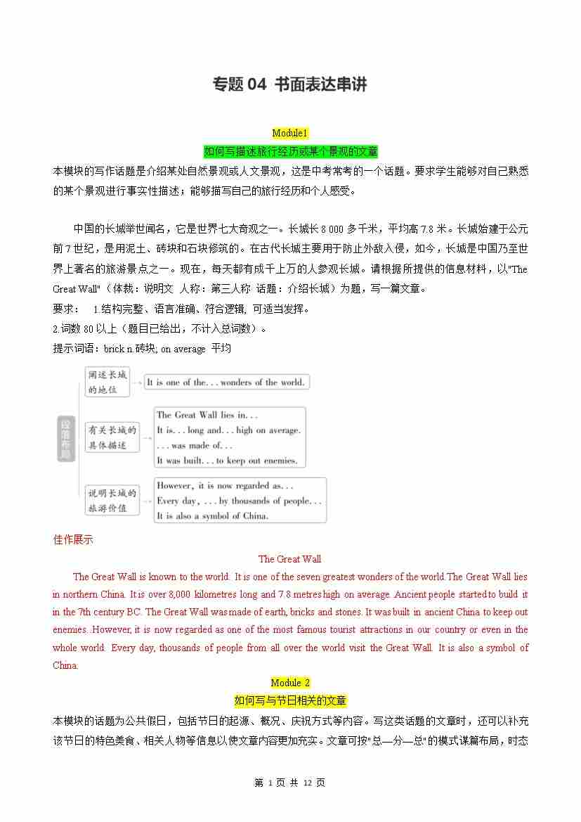 专题04 书面表达串讲【考点清单】(默写版)