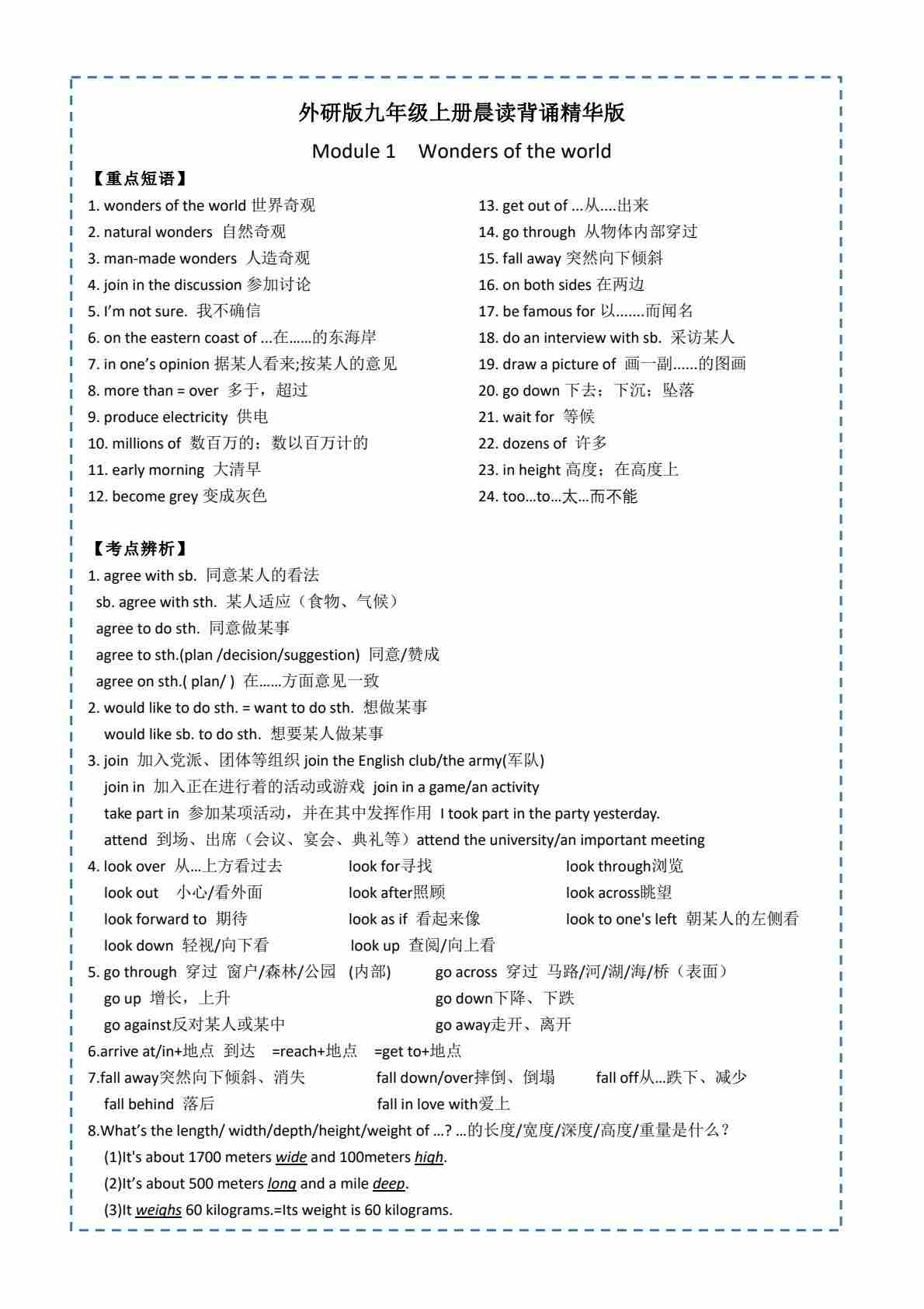 外研版九年级上册晨读背诵精华版