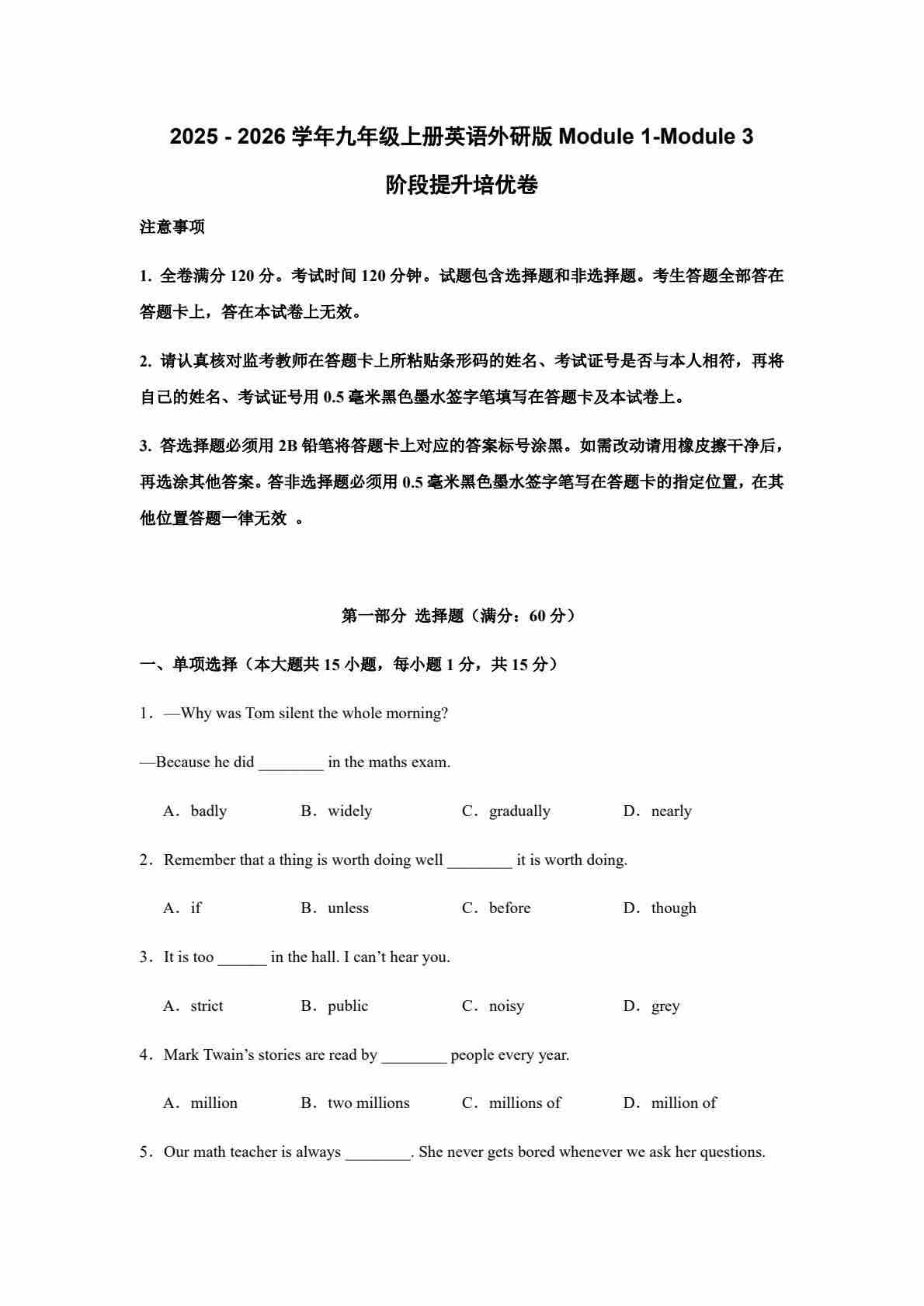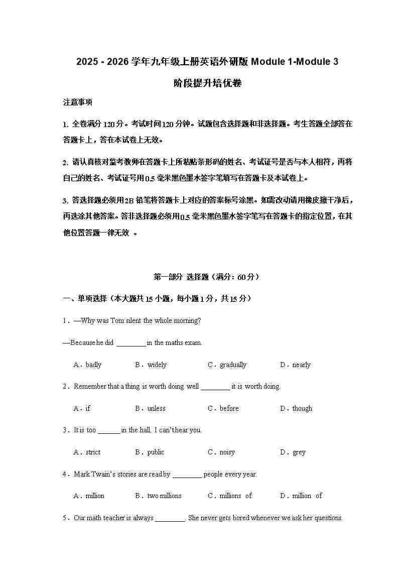 (月考培优卷)Module 1-Module 3 阶段检测培优卷(含答案解析)-2025 - 2026学年九年级上册英语外研版-