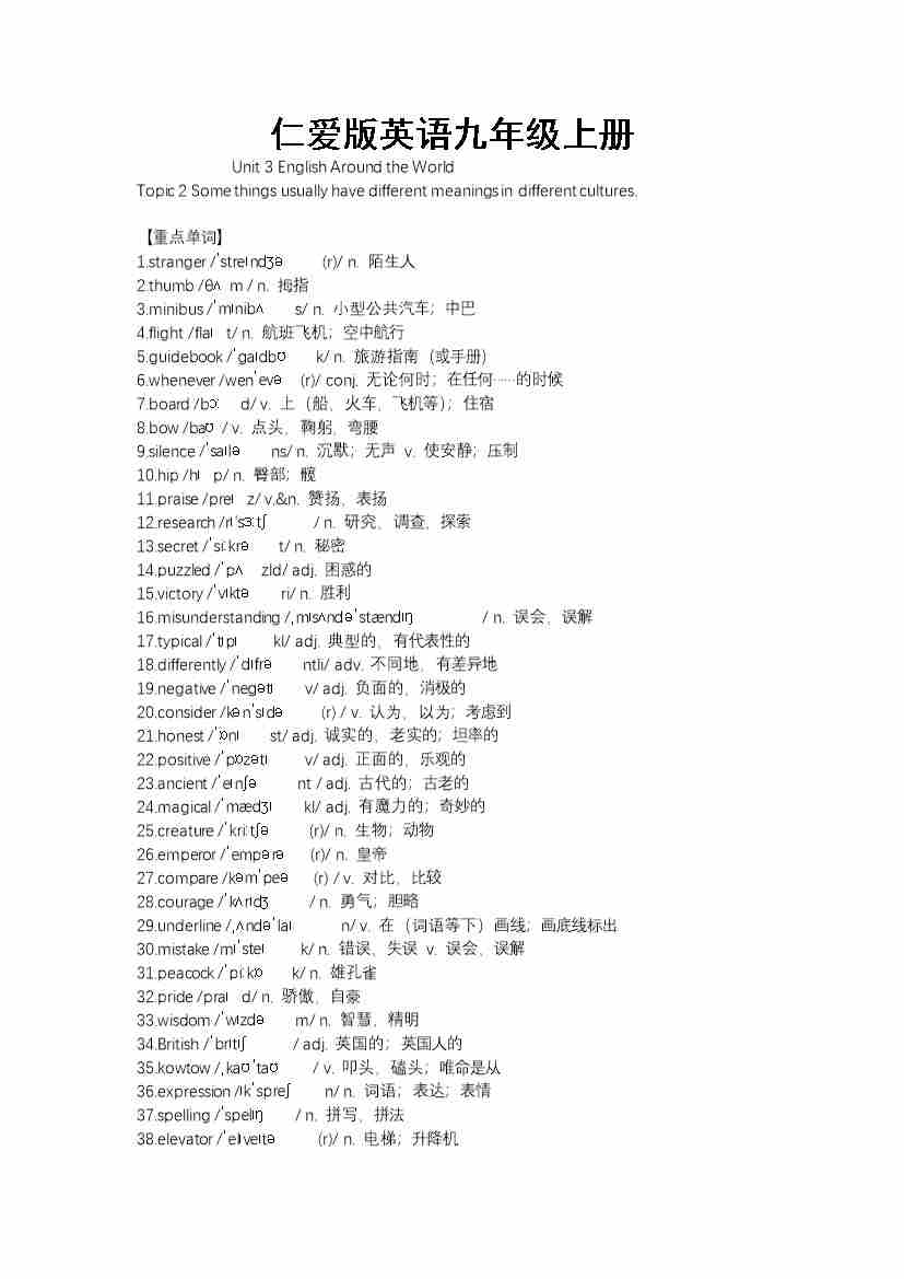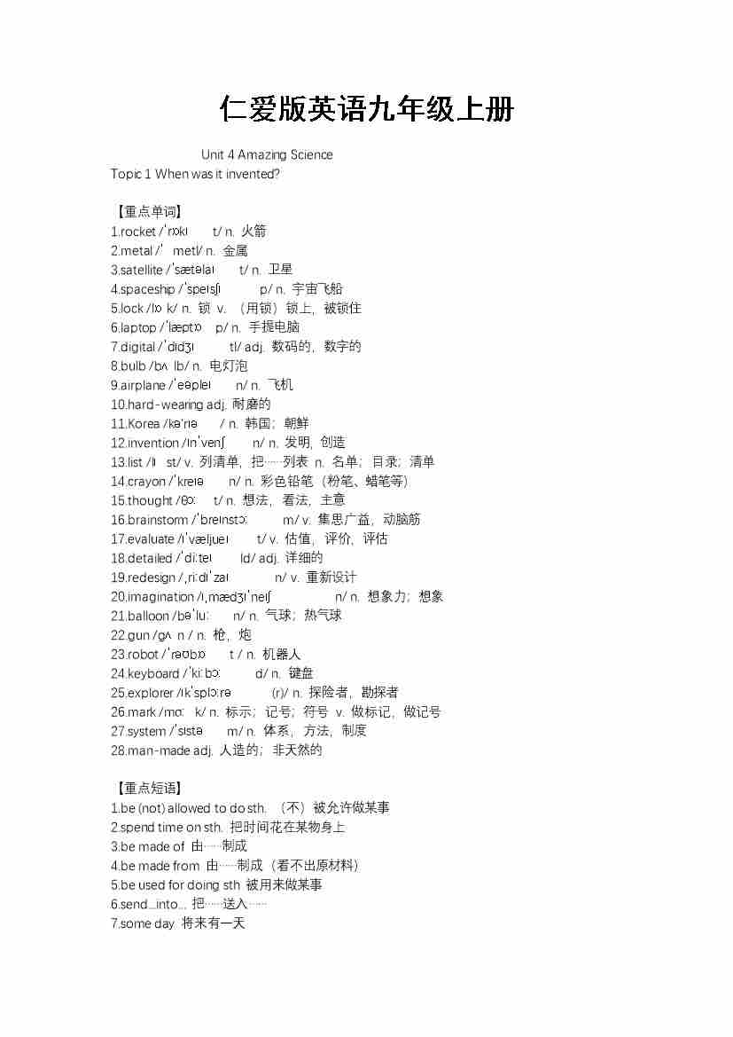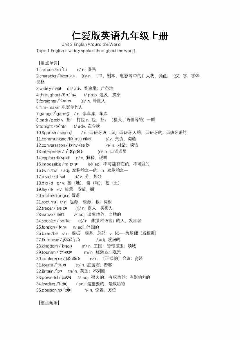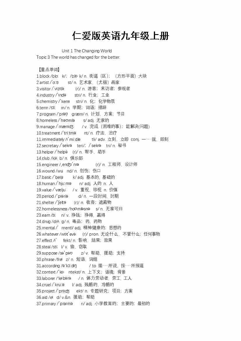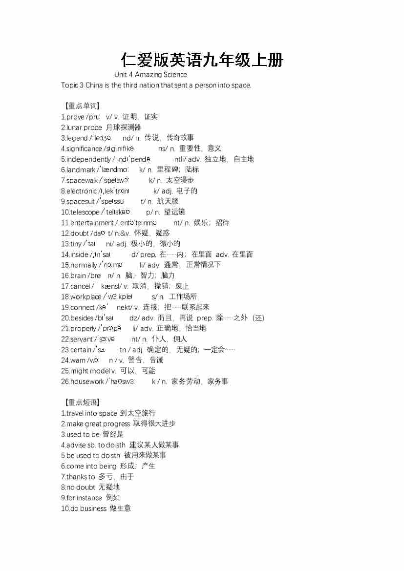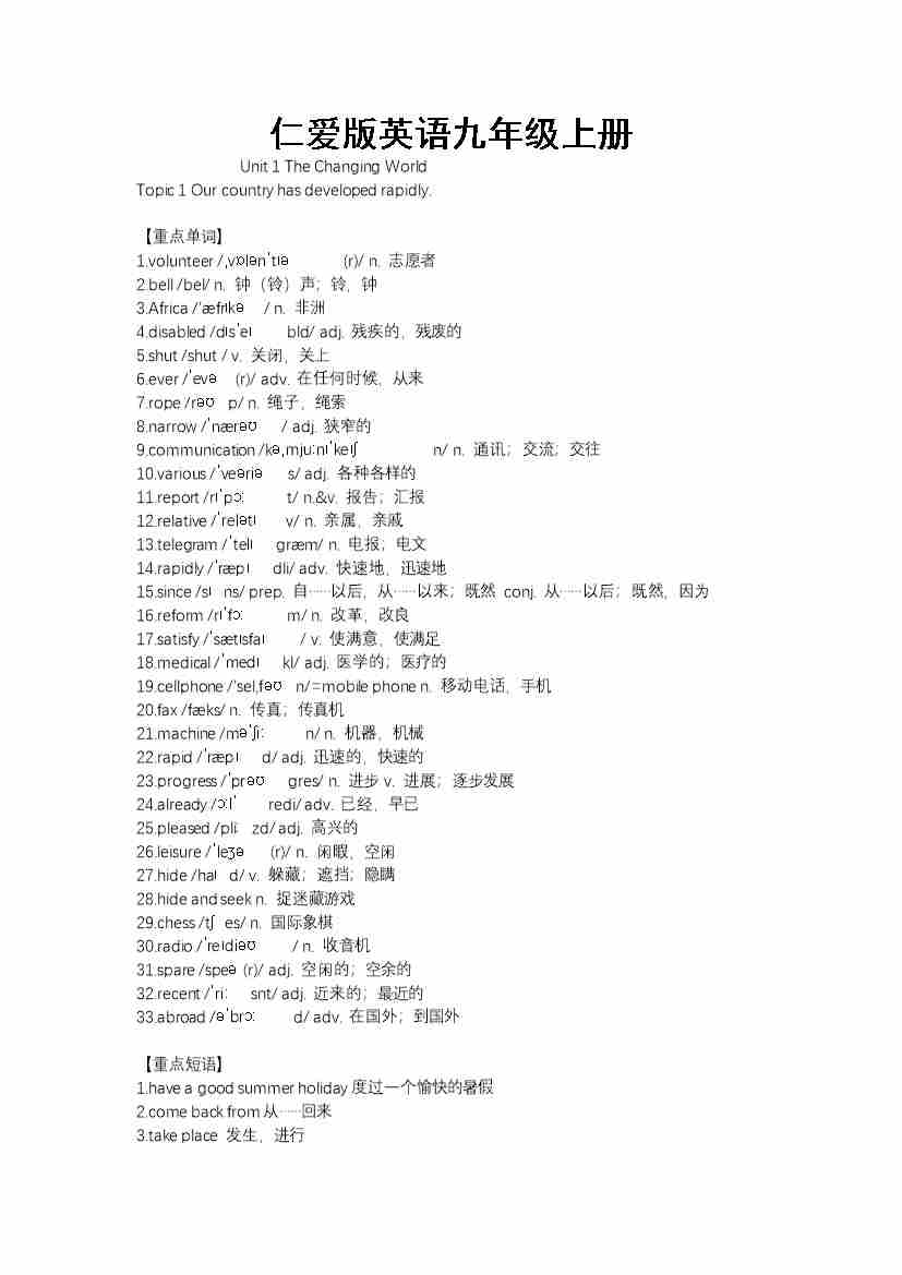 Unit 1 Topic 1 重难点知识归纳总结仁爱版英语九年级上册