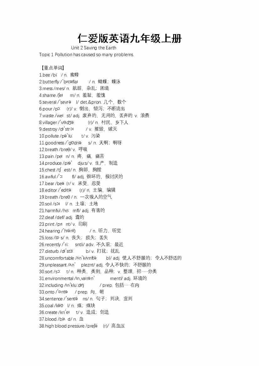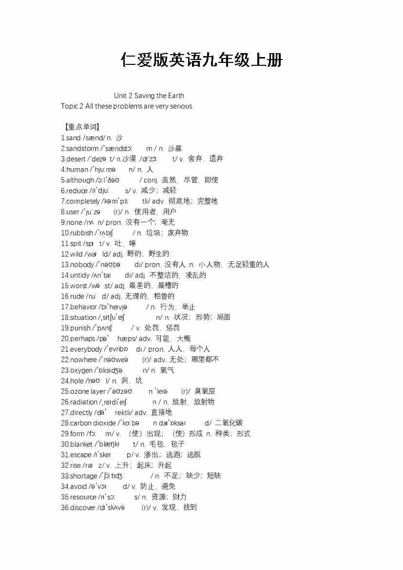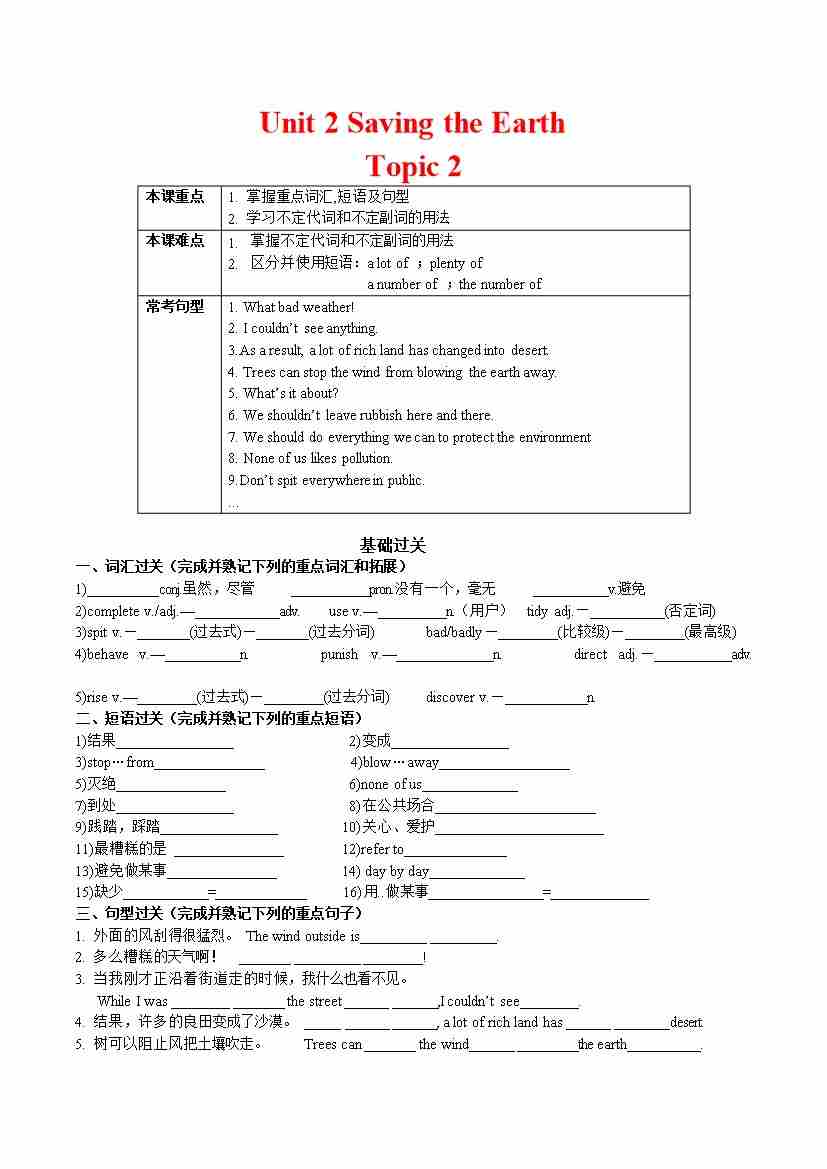 Unit 2 Saving the Earth Topic 2-(仁爱版)