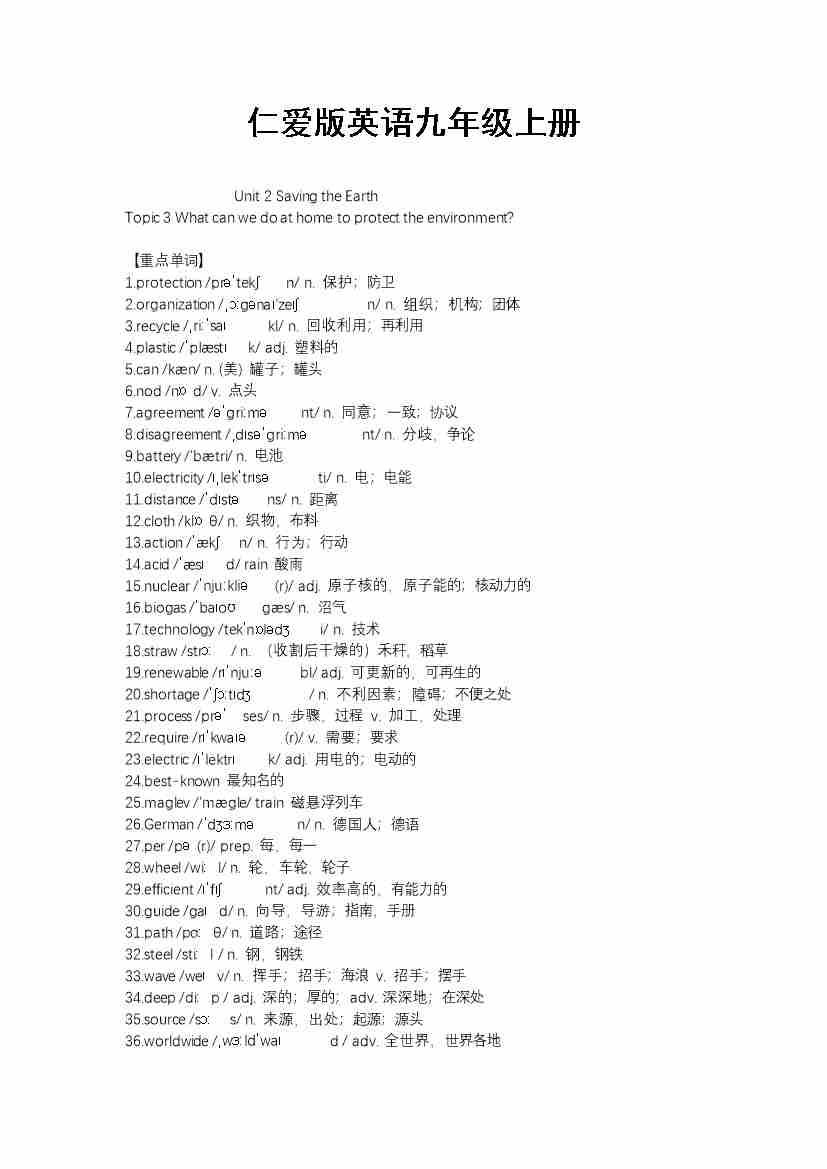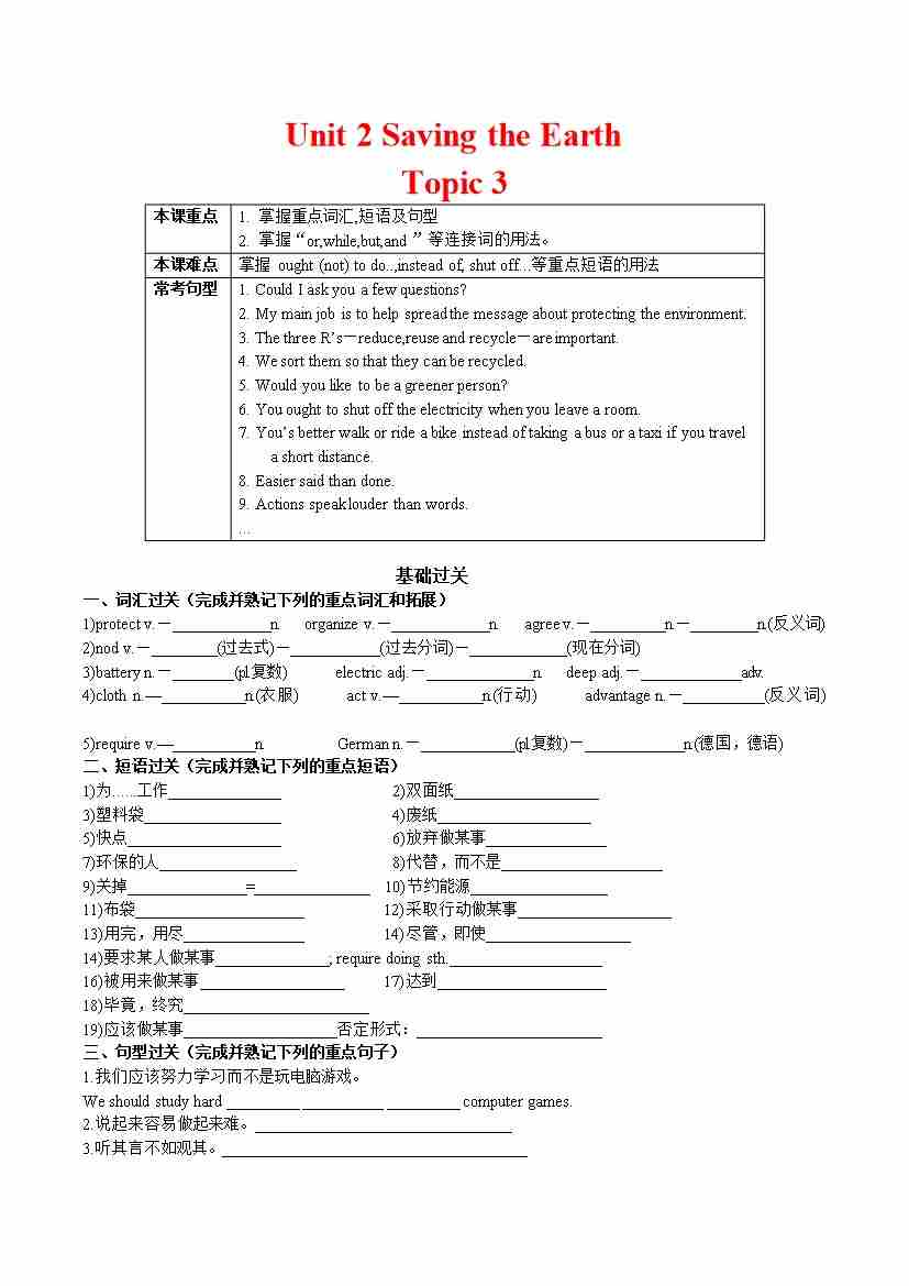 Unit 2 Saving the Earth Topic 3-(仁爱版)