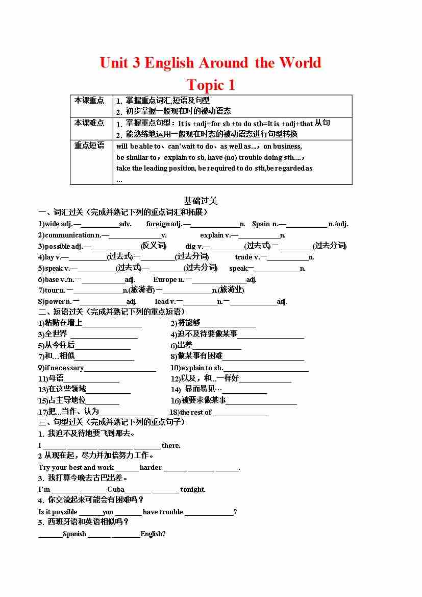 Unit 3 English Around the World Topic 1-(仁爱版)
