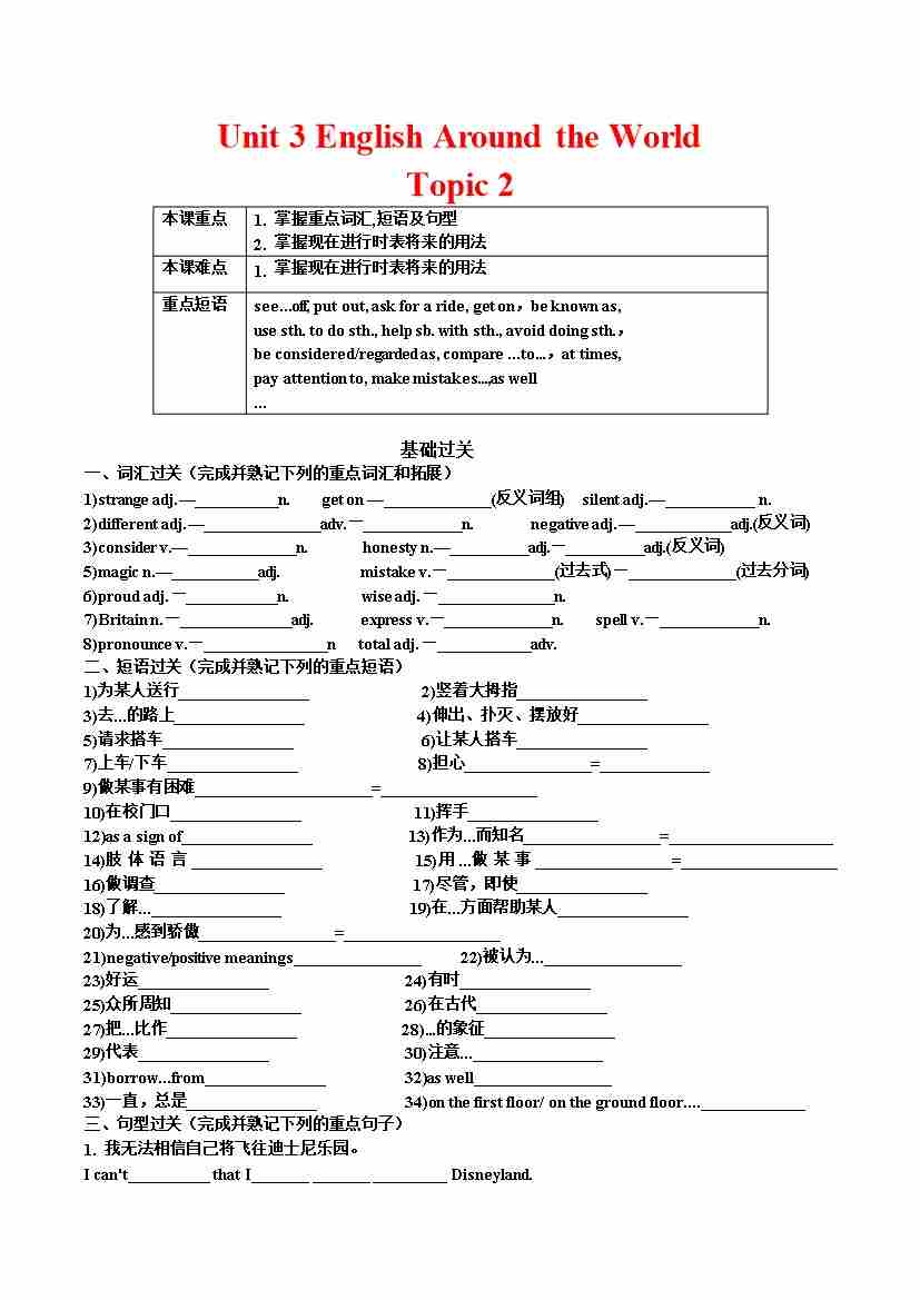 Unit 3 English Around the World Topic 2-(仁爱版)