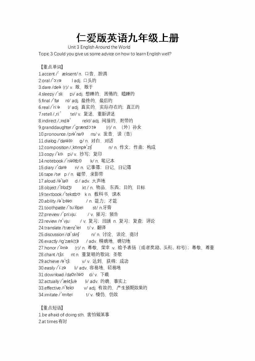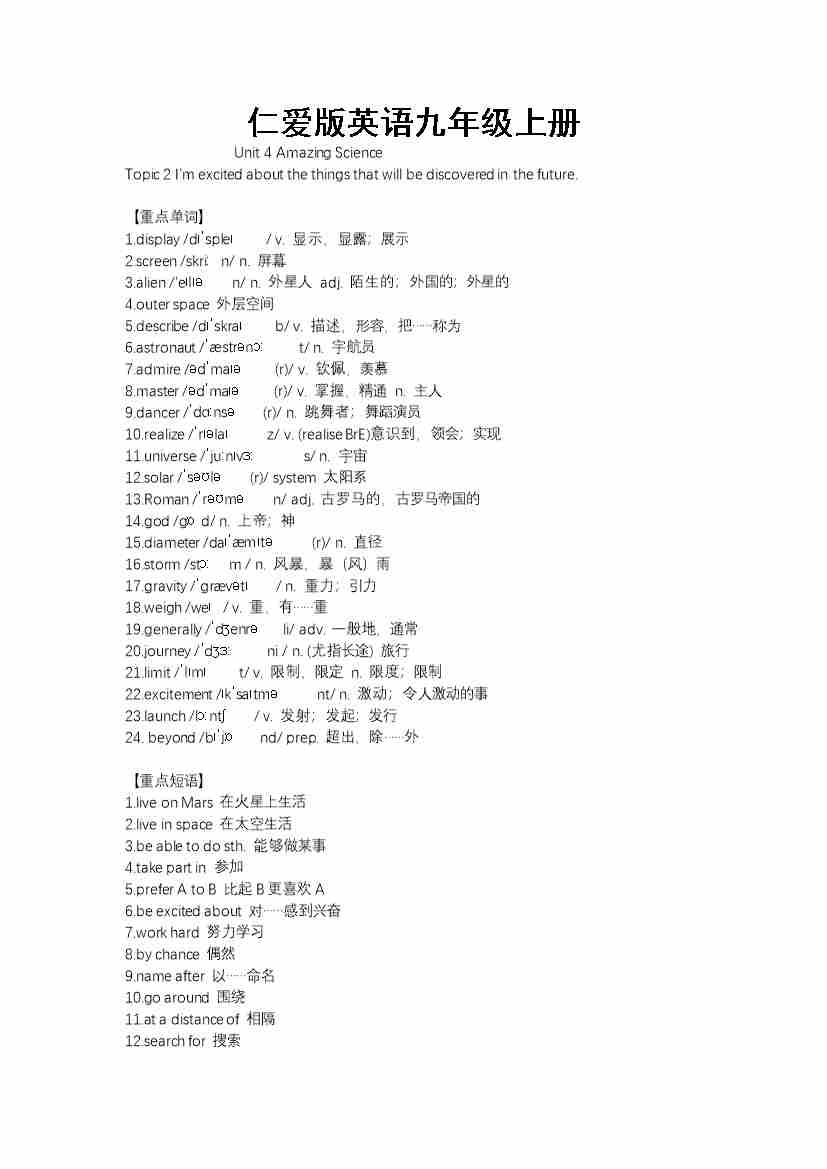 Unit 2 Topic 1 重难点知识归纳总结仁爱版英语九年级上册