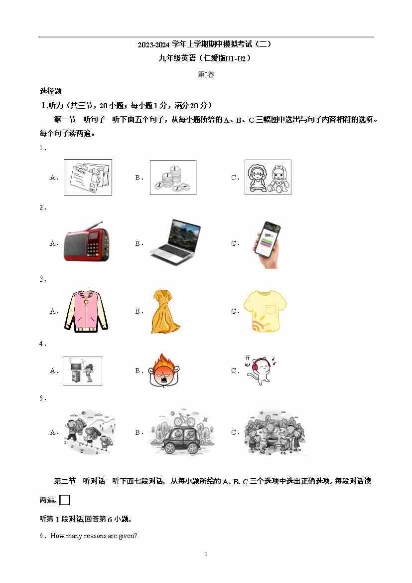 【仁爱】期中模拟卷02【范围:U1-U2】