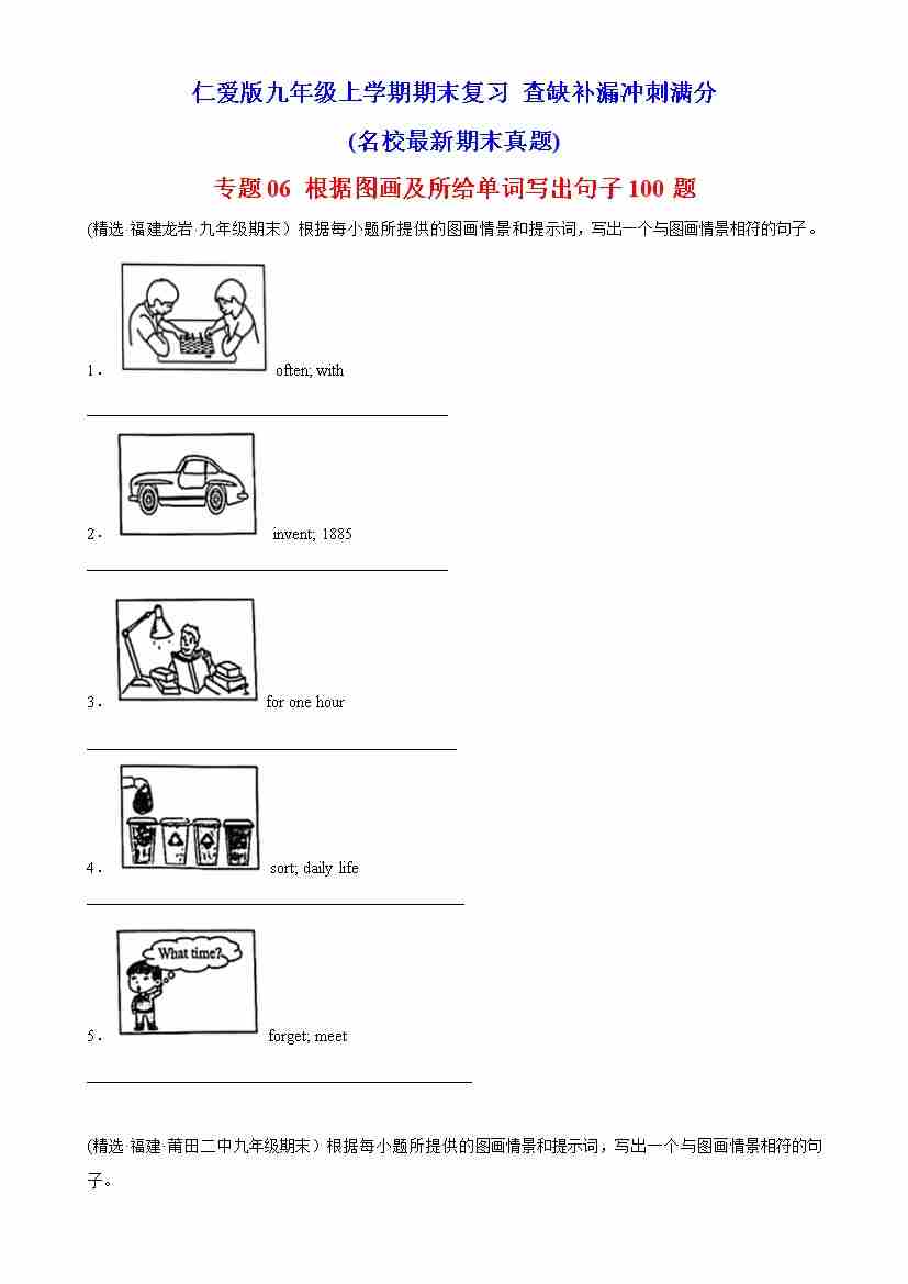 专题06 根据图画及所给单词写出句子100题(名校最新期末真题)-九年级英语上学期期末复习查缺补漏冲刺满分(仁爱版)