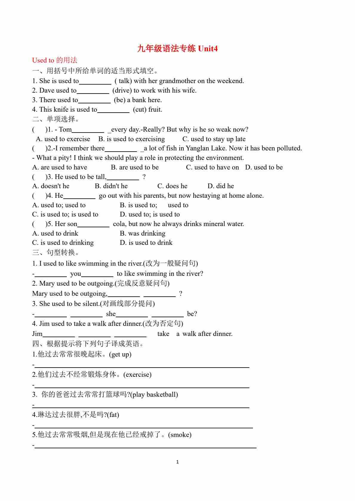 九年级语法专练Unit4