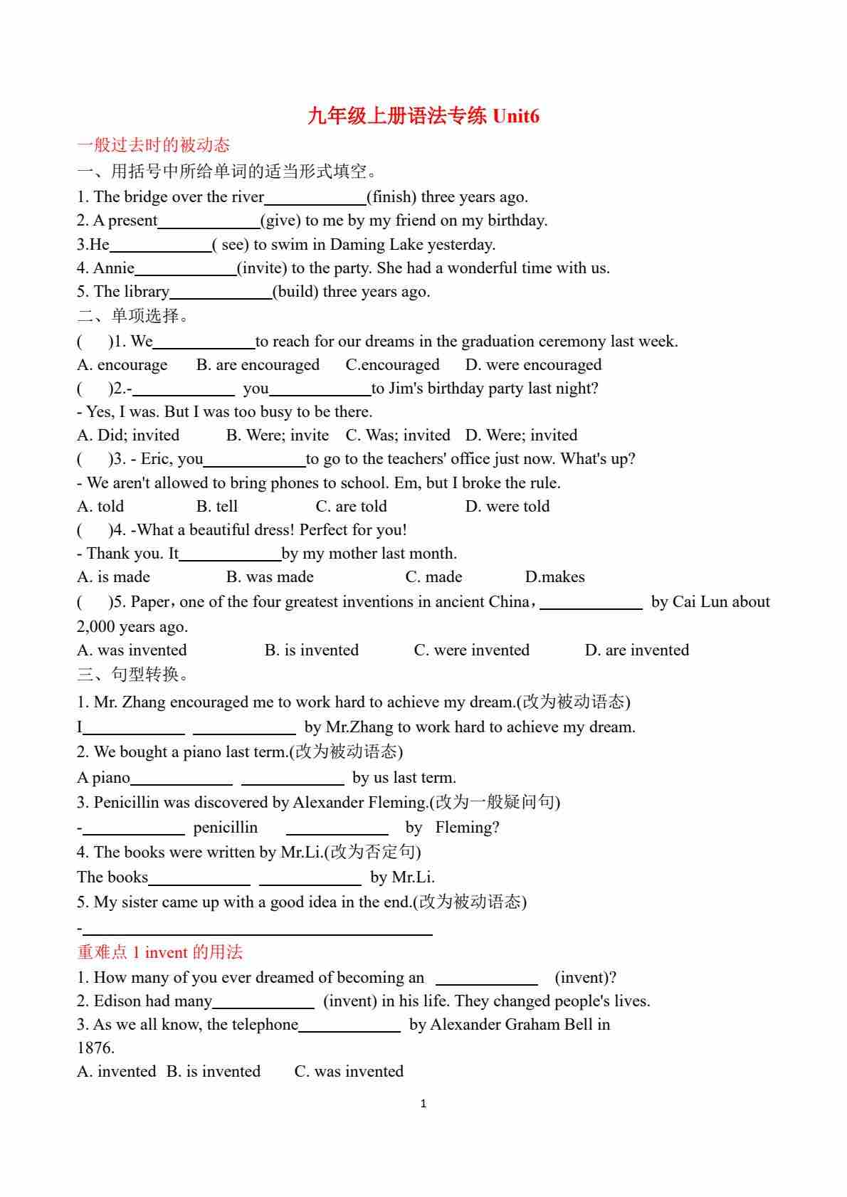 九年级语法专练Unit6