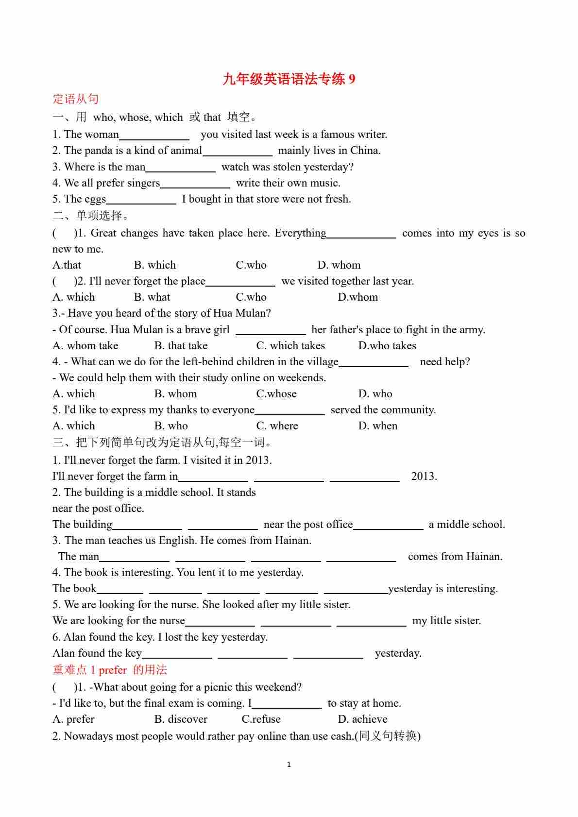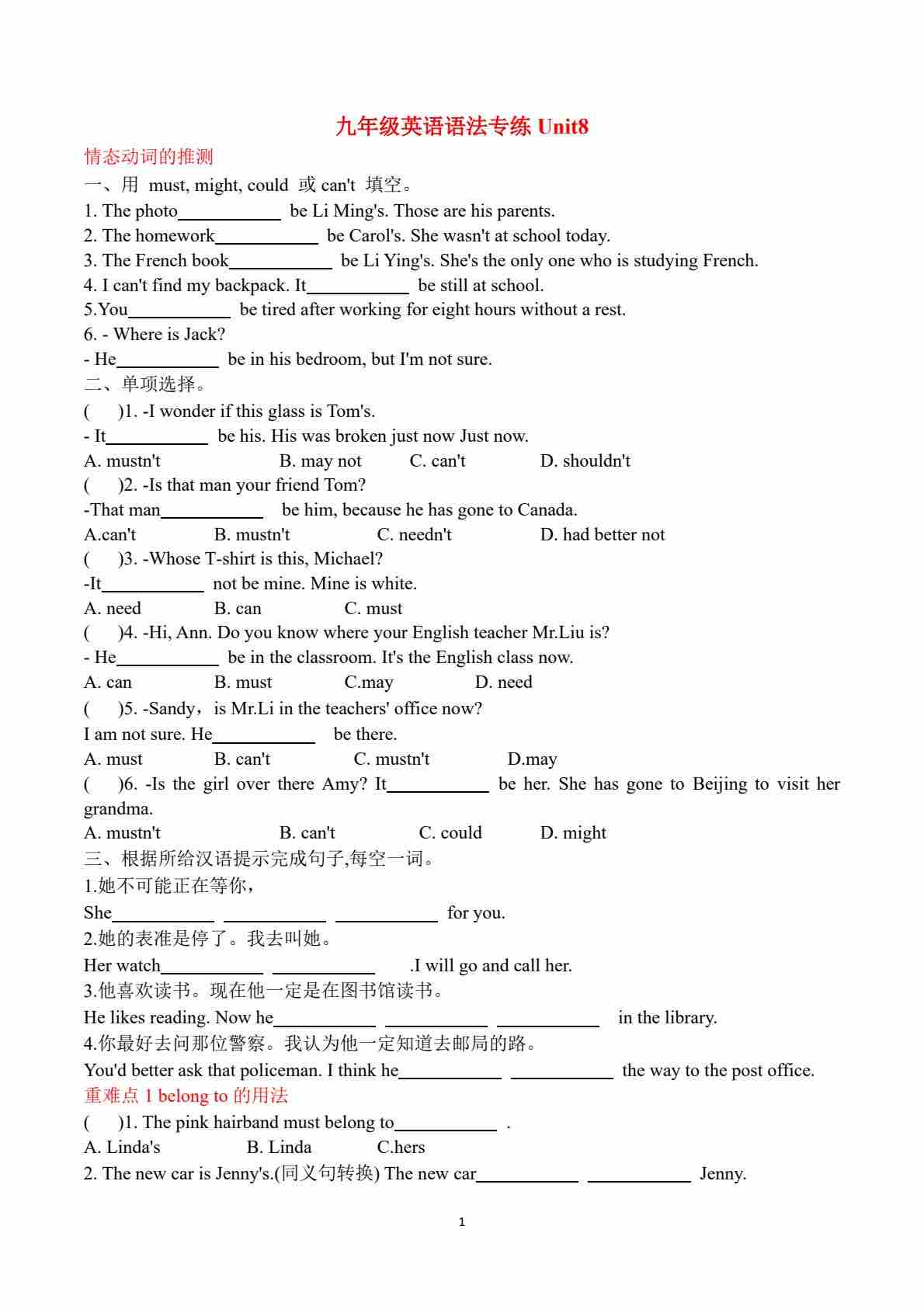 九年级语法专练Unit8