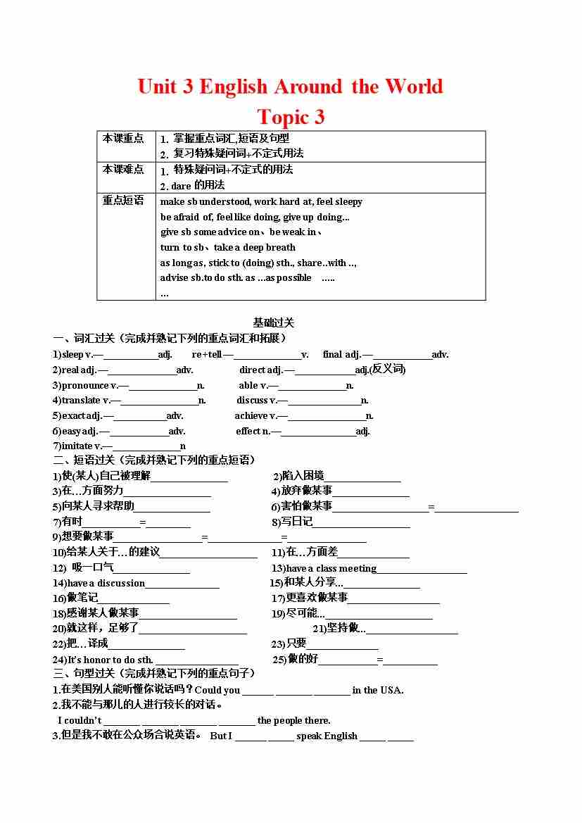 Unit 3 English Around the World Topic 3-(仁爱版)