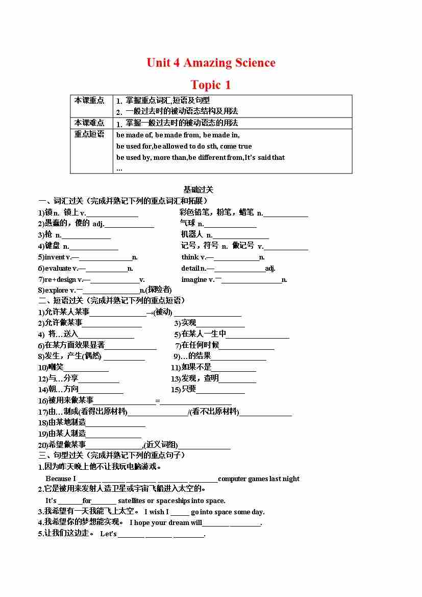 Unit 4 Amazing Science Topic 1-(仁爱版)
