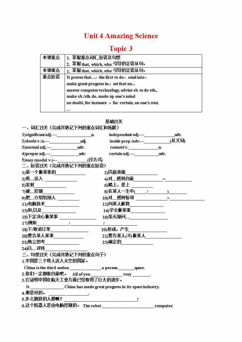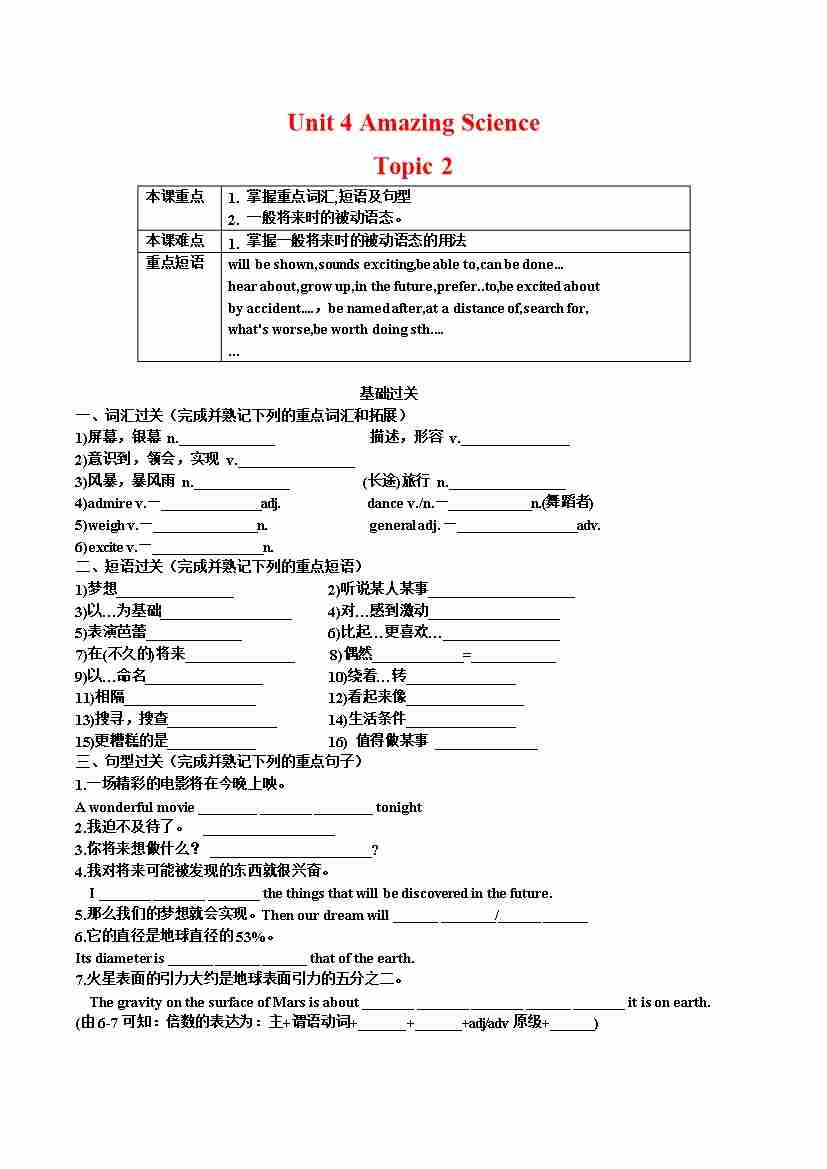 Unit 4 Amazing Science Topic 3-(仁爱版)