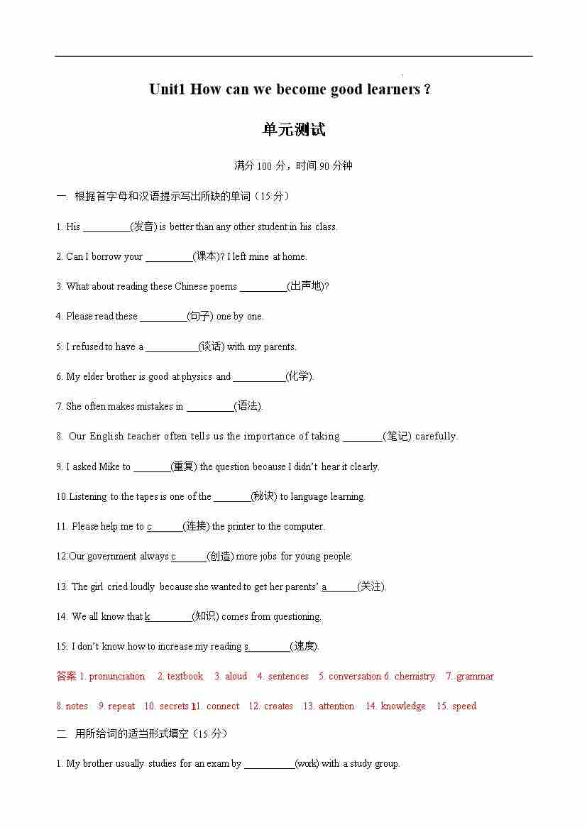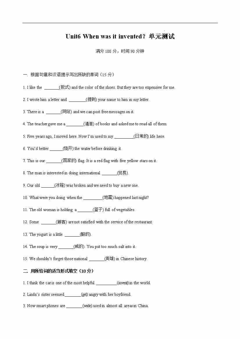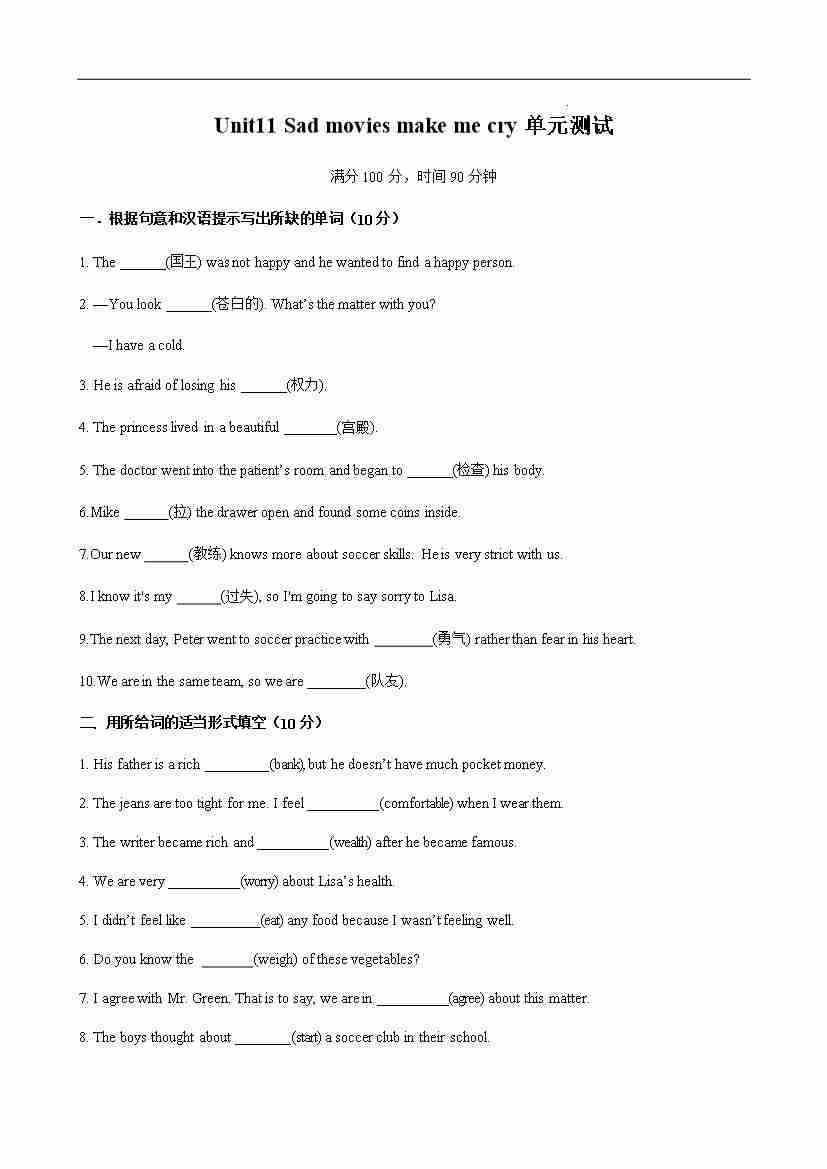 Unit11 Sad movies make me cry单元测试(原卷版)