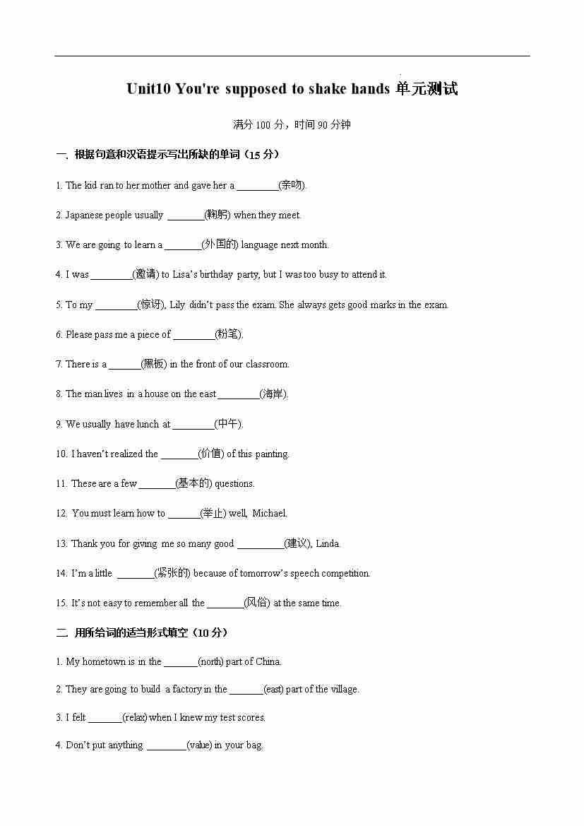 Unit10 You're supposed to shake hands单元测试(原卷版)-