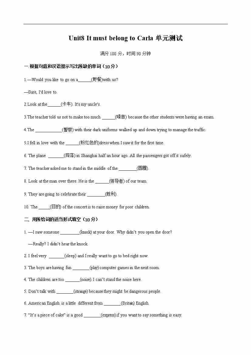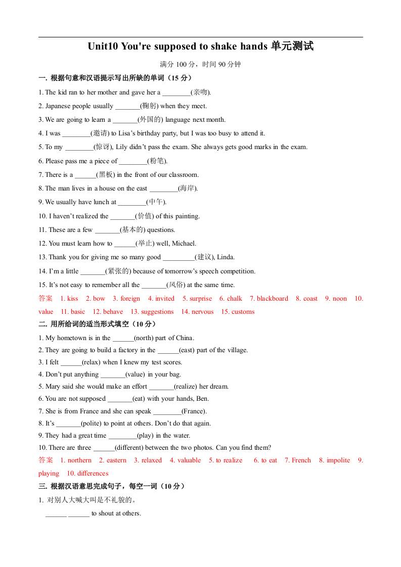 Unit10 You're supposed to shake hands单元测试(解析版)-