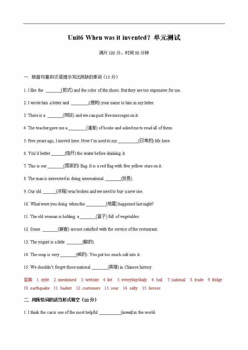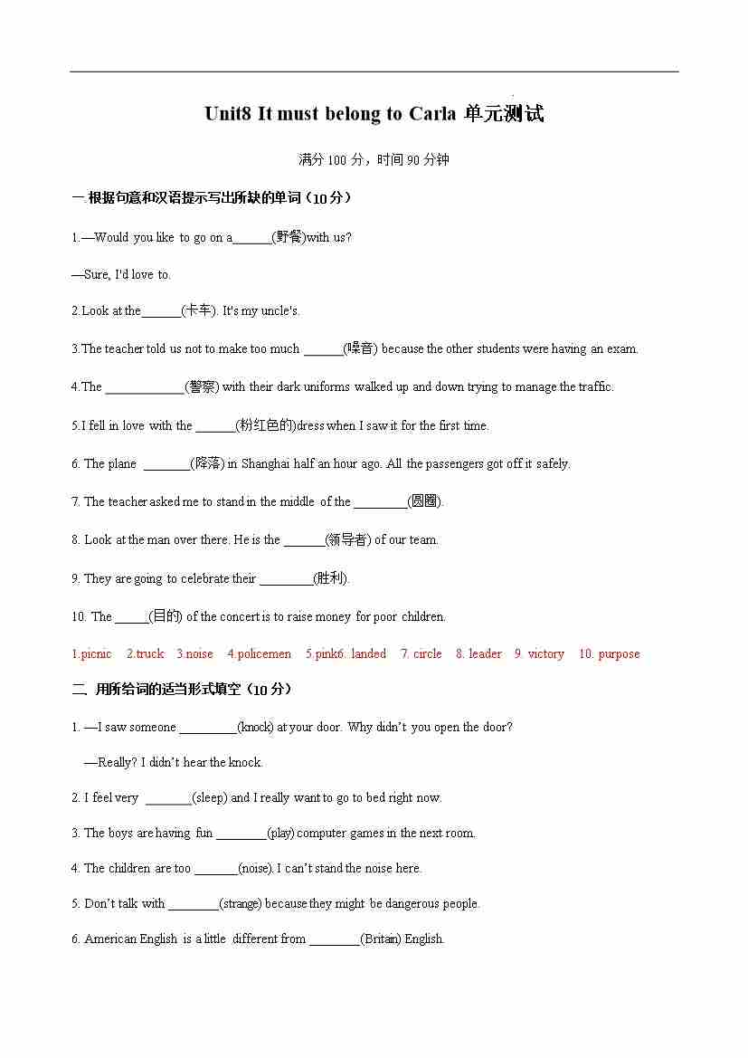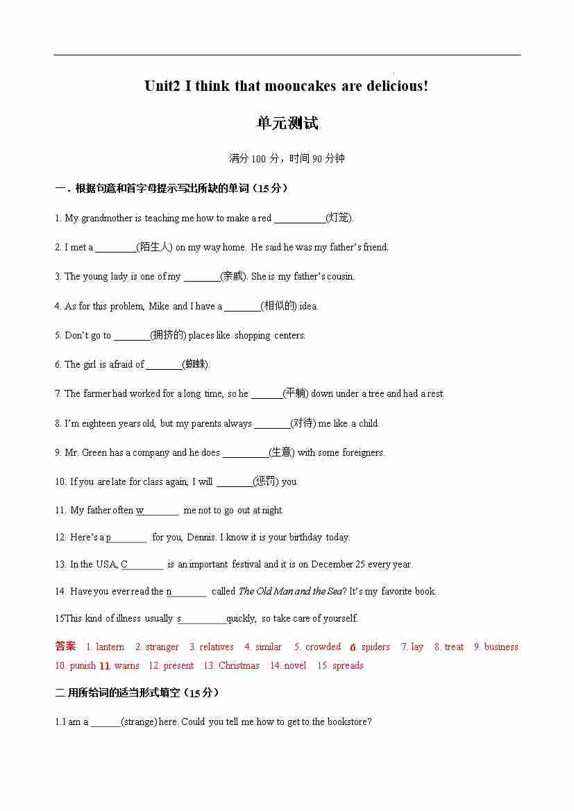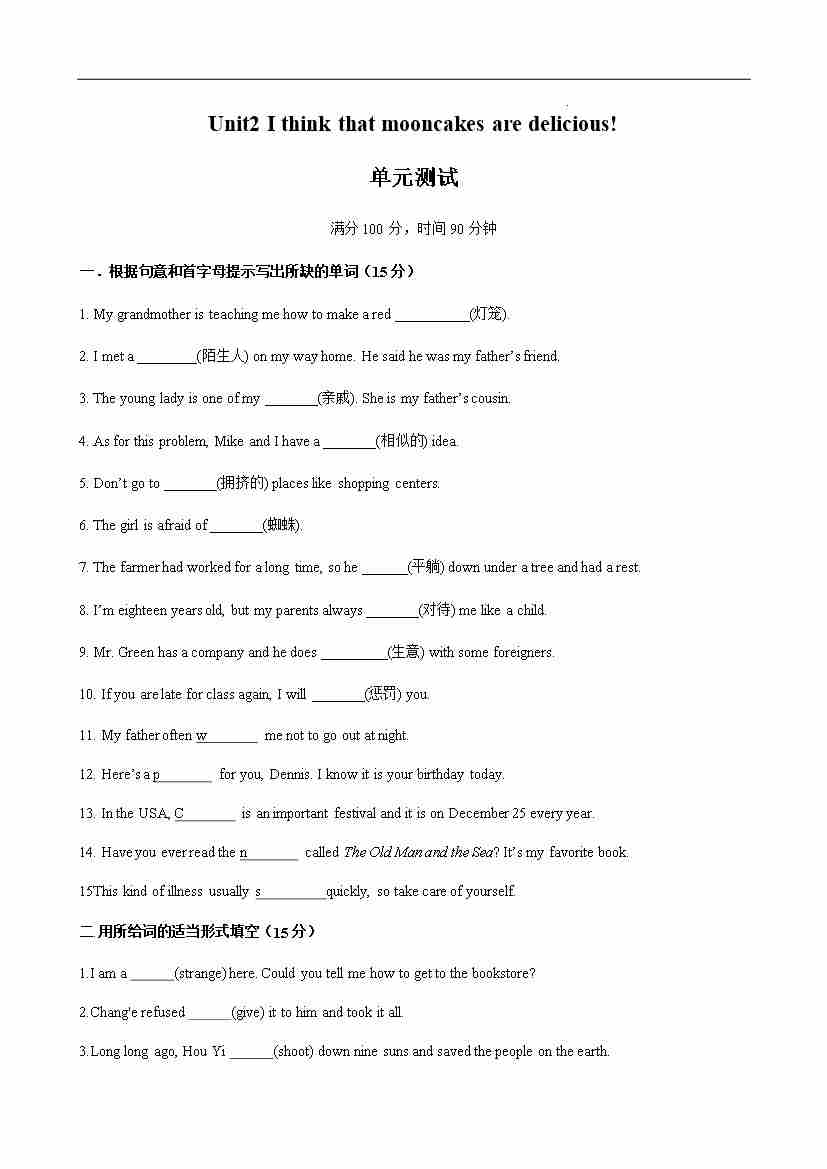 Unit2 I think that mooncakes are delicious!单元测试(解析版)