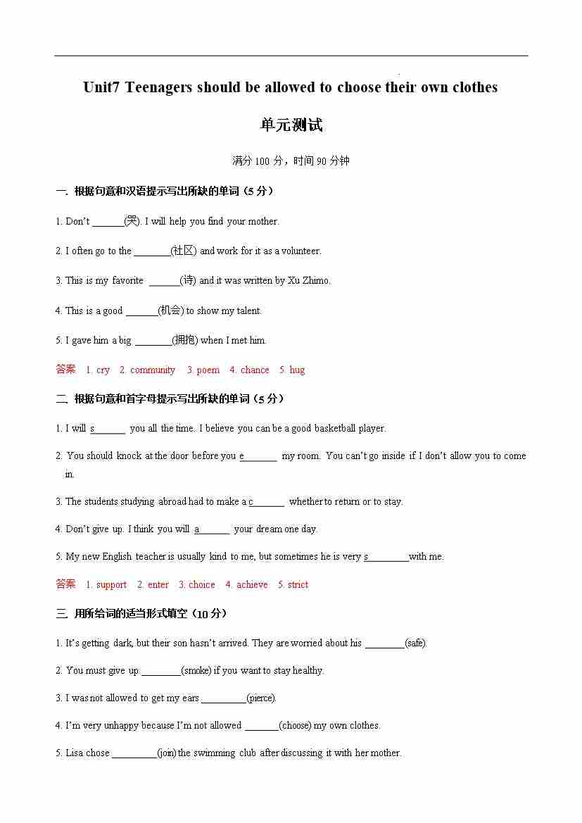 Unit7 Teenagers should be allowed to choose their own clothes单元测试(解析版)
