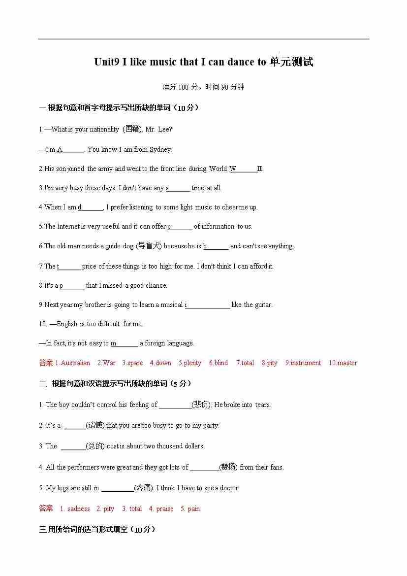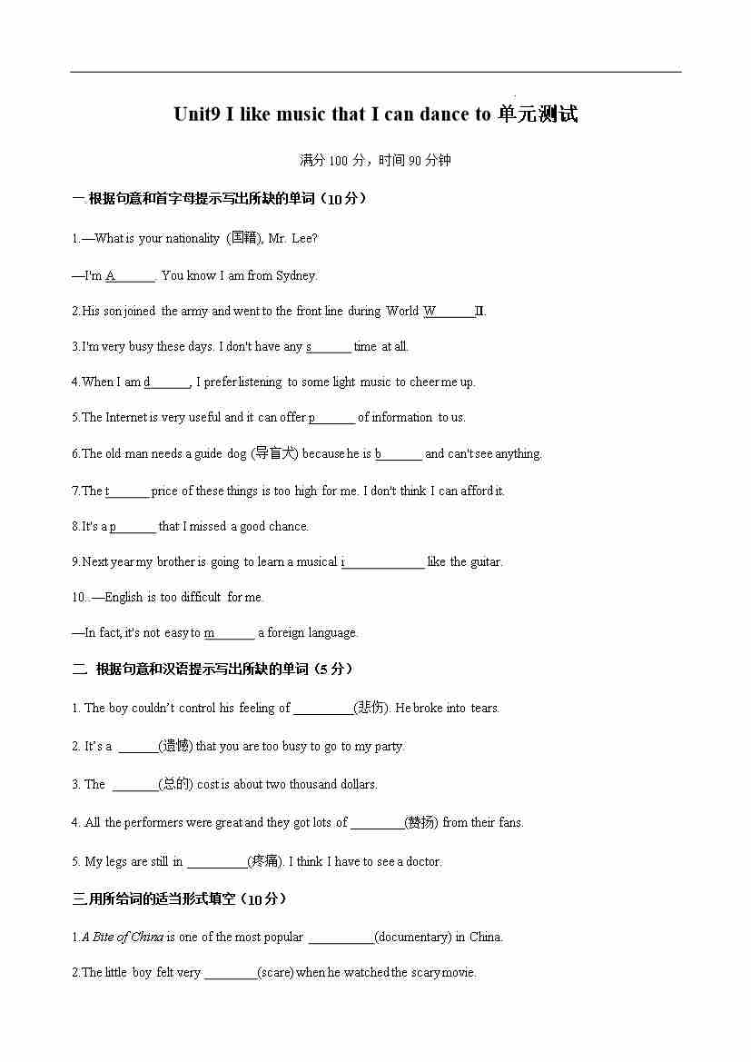 Unit9 I like music that I can dance to单元测试(原卷版)