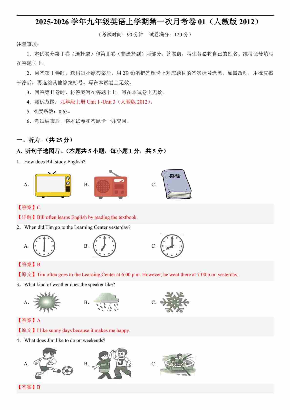 2025(人教版)九年级英语第一次月考卷01(全解全析)