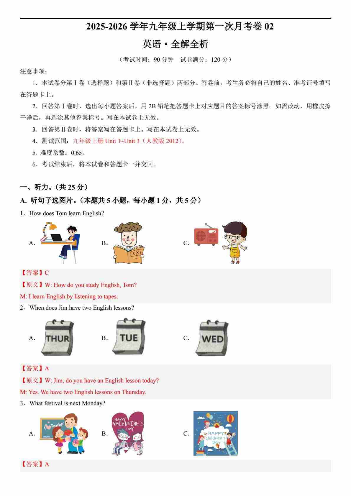 2025(人教版)九年级英语第一次月考卷02(全解全析)