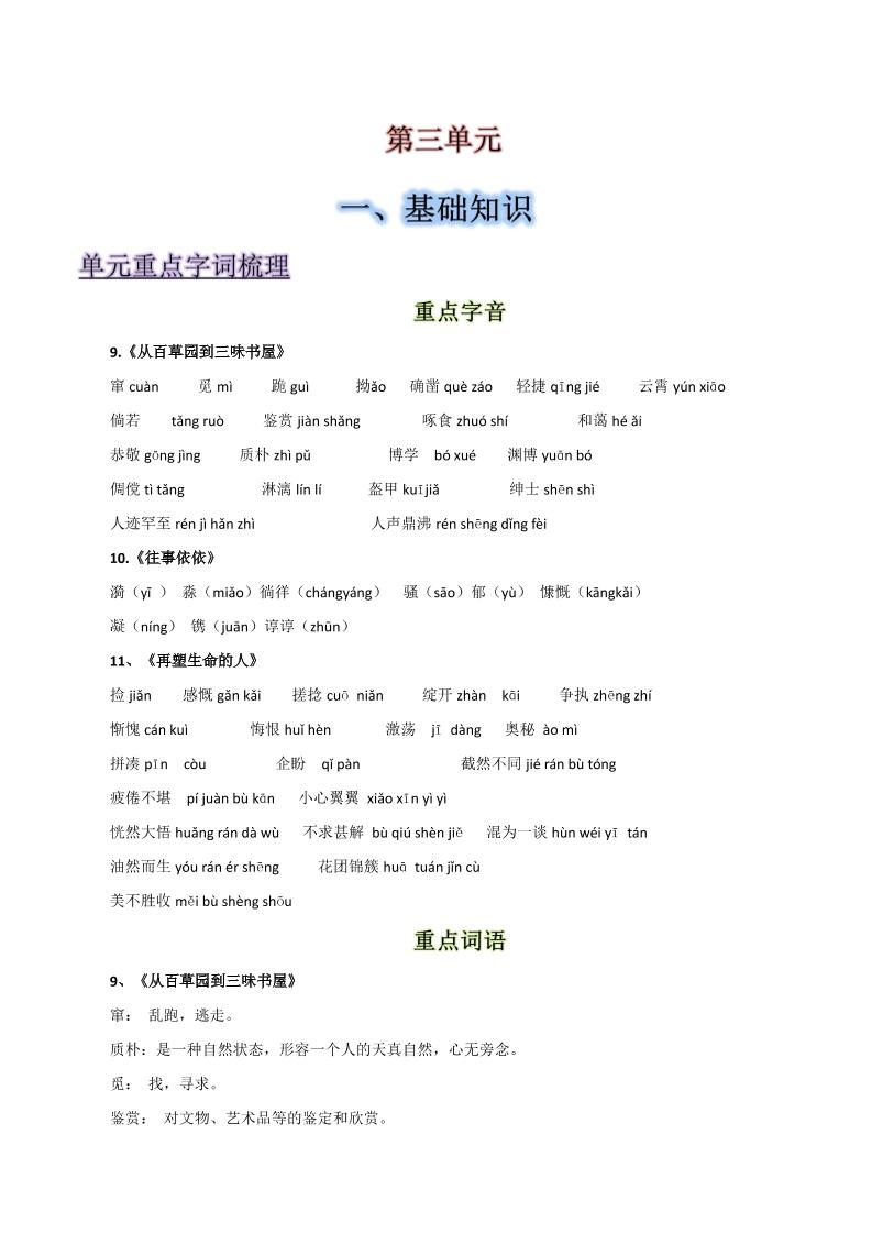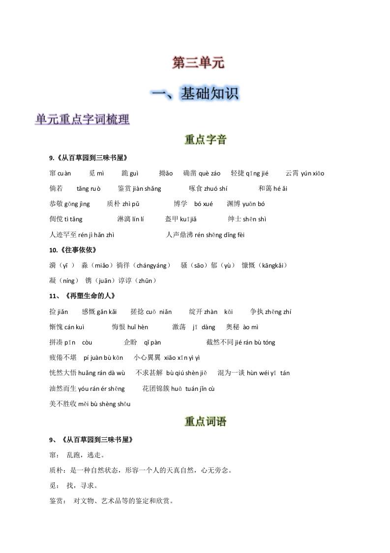 第三单元-2025-2026学年七年级语文上册【速记清单】.