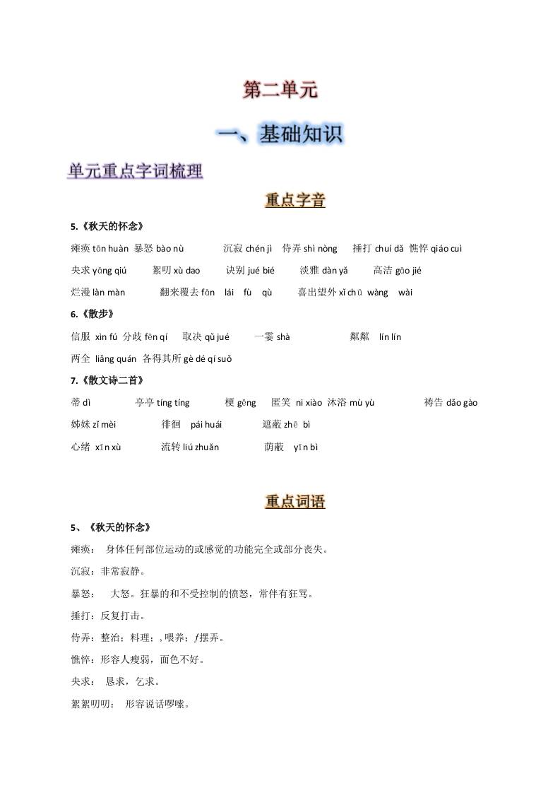 第二单元-2025-2026学年七年级语文上册【速记清单】