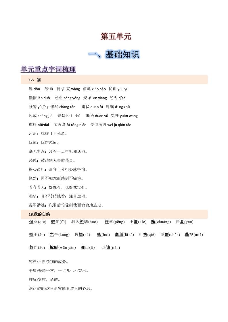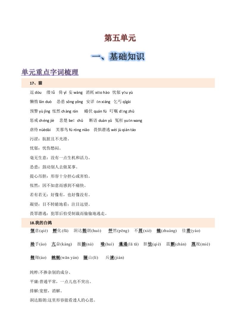 第五单元-2025-2026学年七年级语文上册【速记清单】.