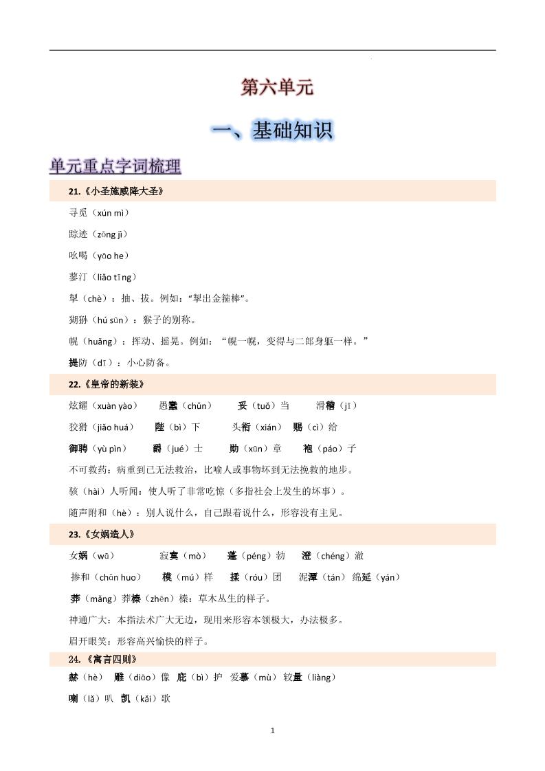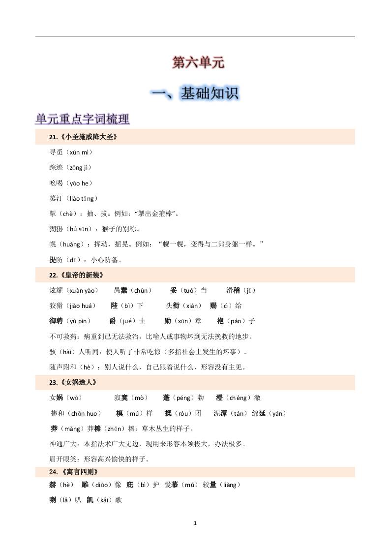 第六单元-2025-2026学年七年级语文上册【速记清单】.