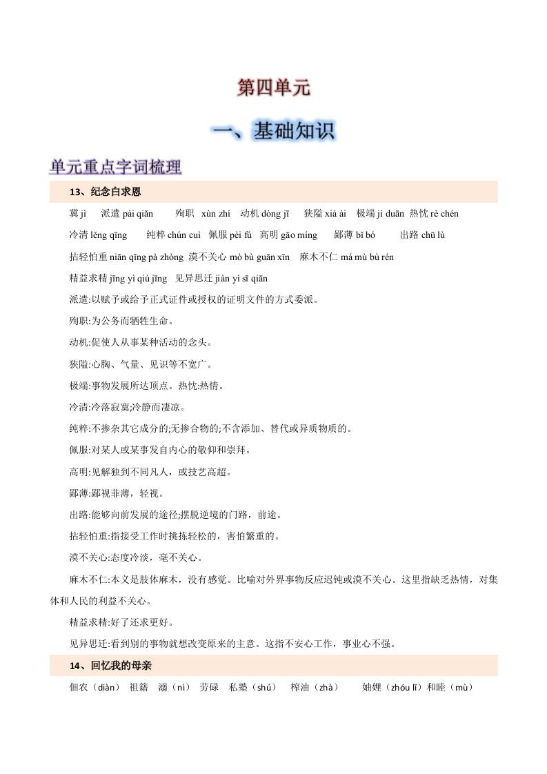 第四单元-2025-2026学年七年级语文上册【速记清单】.