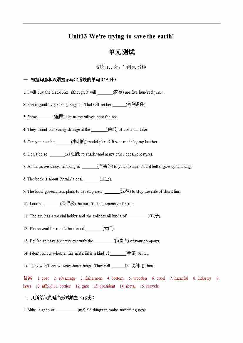 Unit13 We're trying to save the earth!单元测试(解析版)