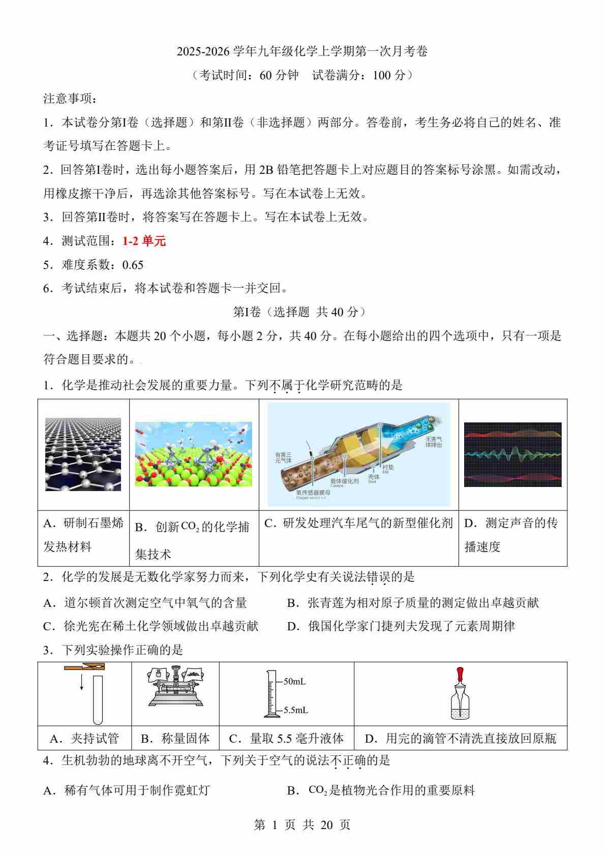 【科粤】9上化学第1次月考【第1-2单元】--科粤版