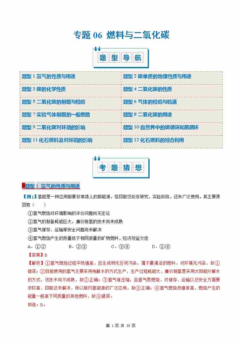 专题05 燃料与二氧化碳(考题猜想)(12大题型)(解析版)