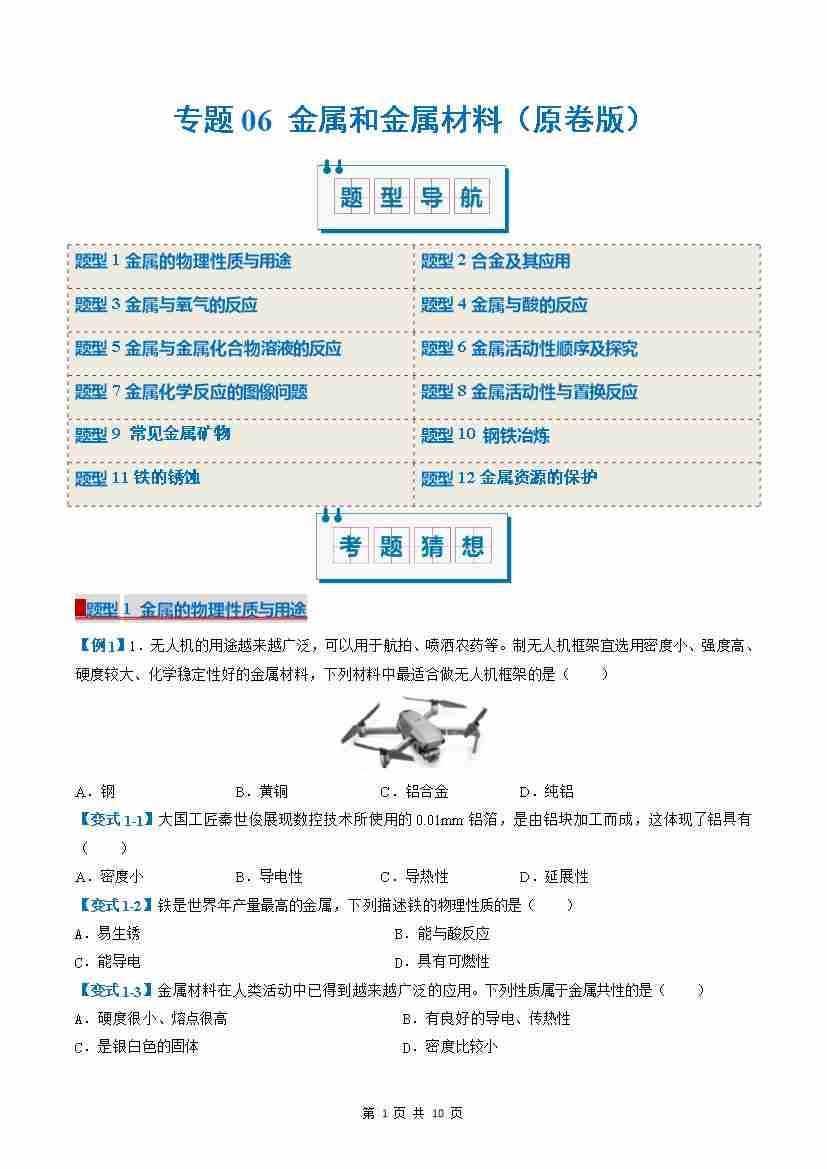 专题06 金属和金属材料(考题猜想)(14大题型)(原卷版)