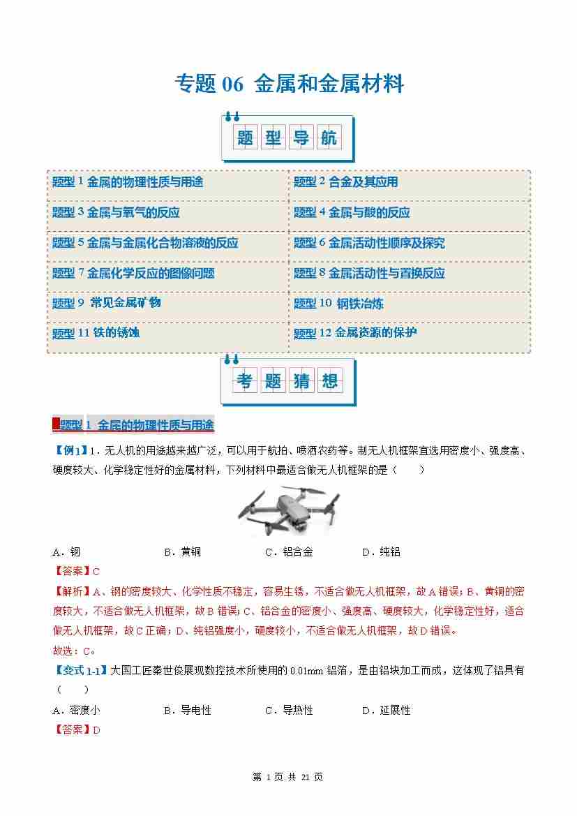 专题06 金属和金属材料(考题猜想)(14大题型)(解析版)