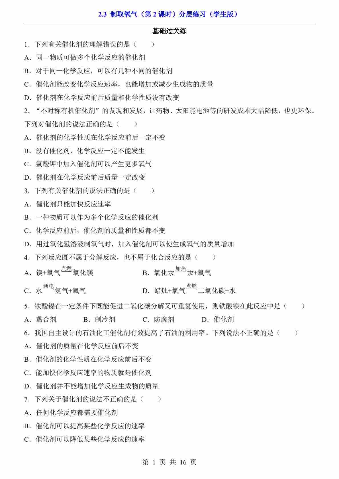 课题2.1 我们周围的空气 第2课时(分层练习)
