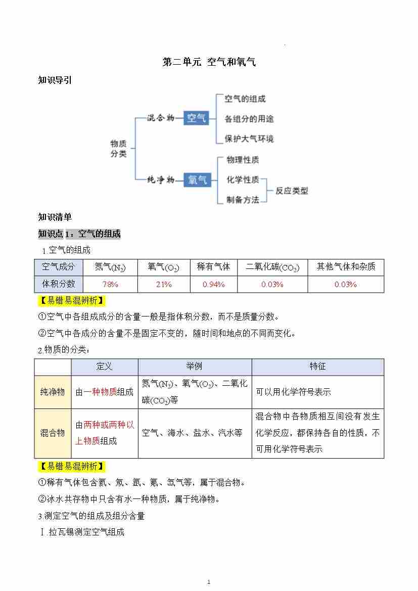 第2单元 空气和氧气(单元知识清单)九年级化学上册同步高效课堂(人教版2024)