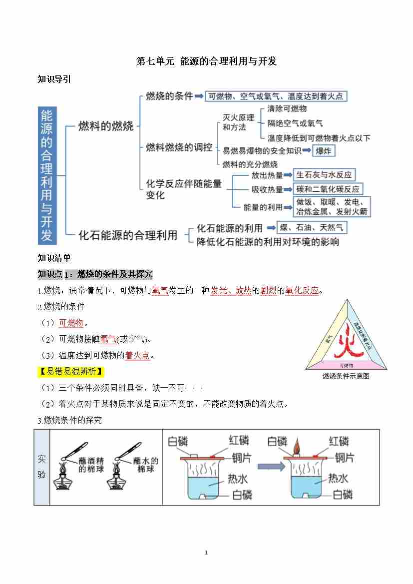 第7单元 能源的合理利用与开发(单元知识清单)九年级化学上册同步高效课堂(人教版2024)