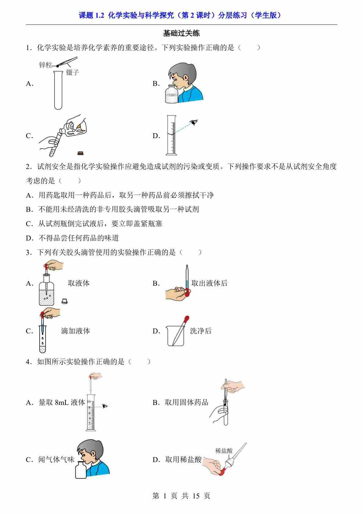 课题1.2 化学实验与科学探究 第1课时(分层练习)