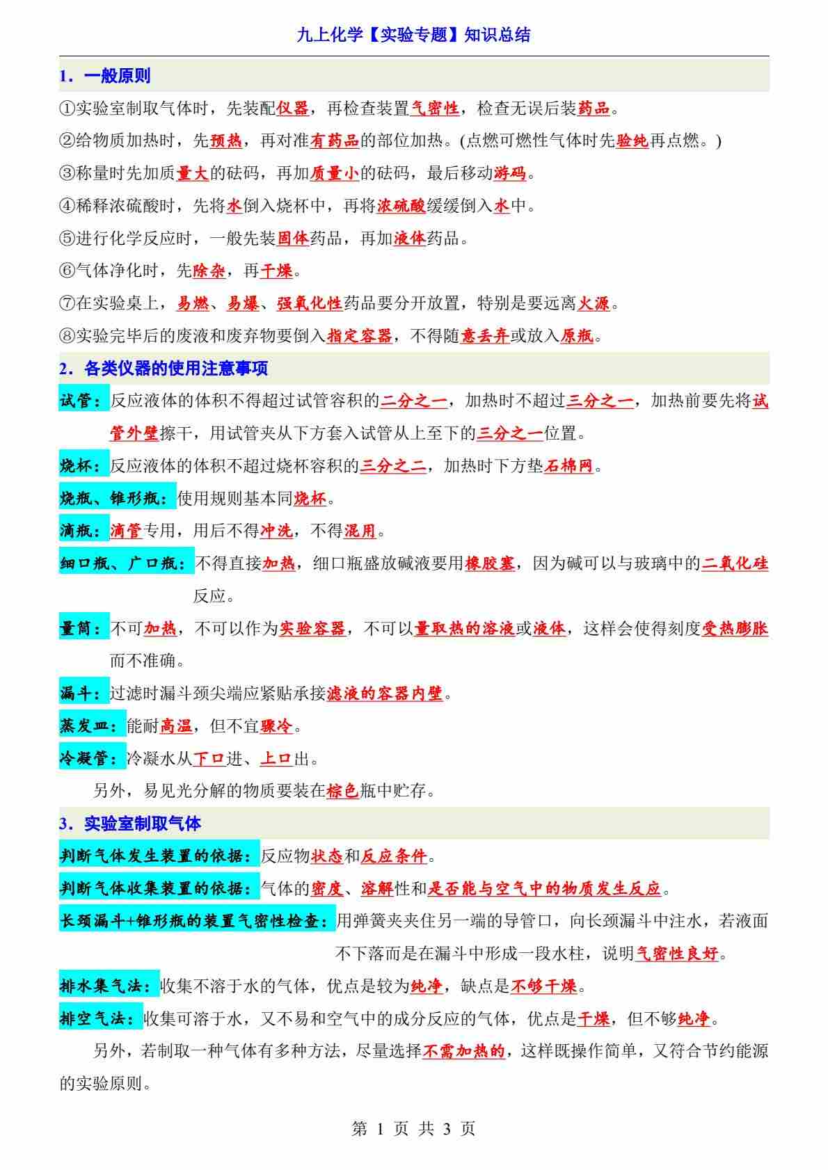 19九上化学【实验专题】知识总结