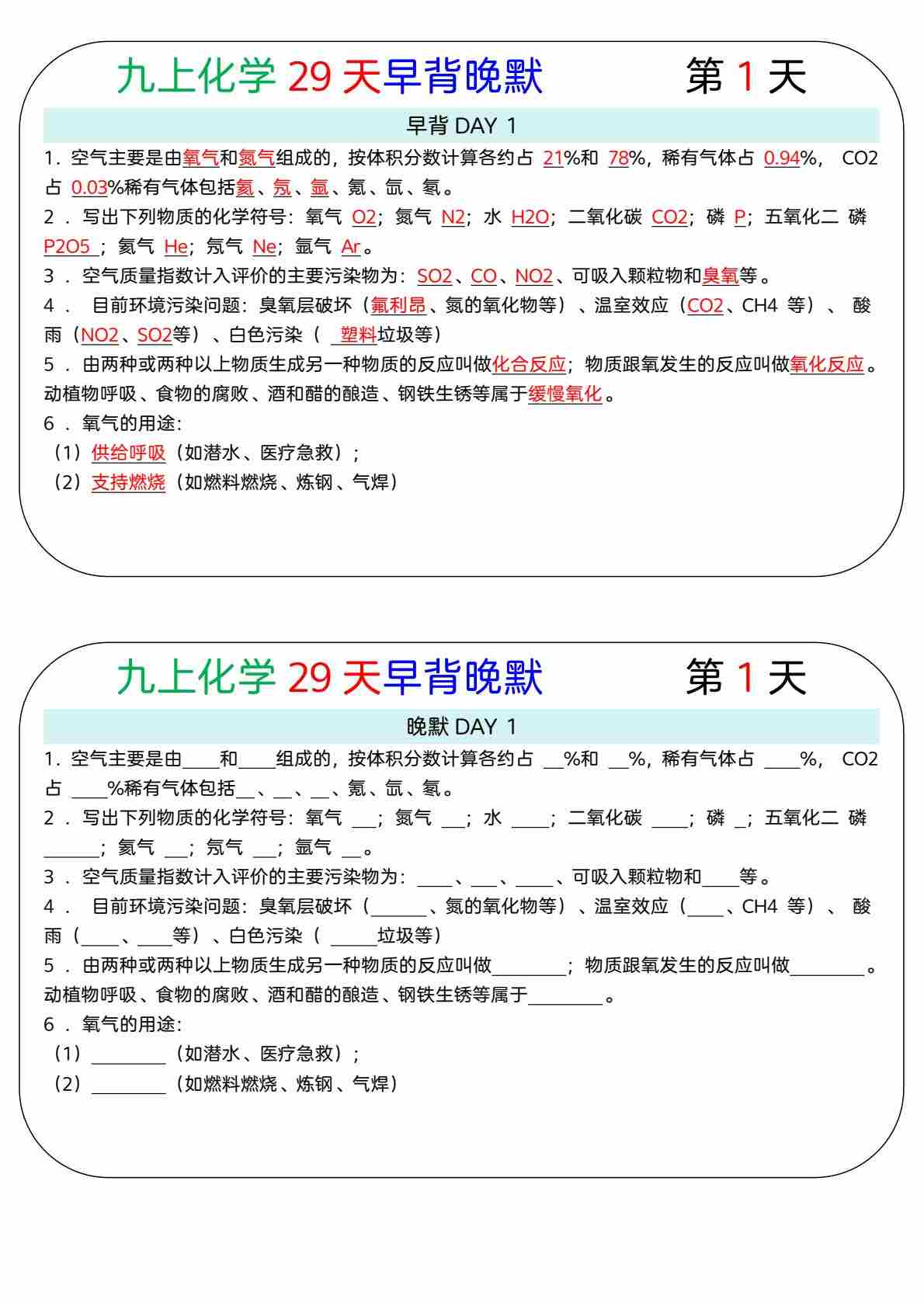 20九上化学29天早背晚默