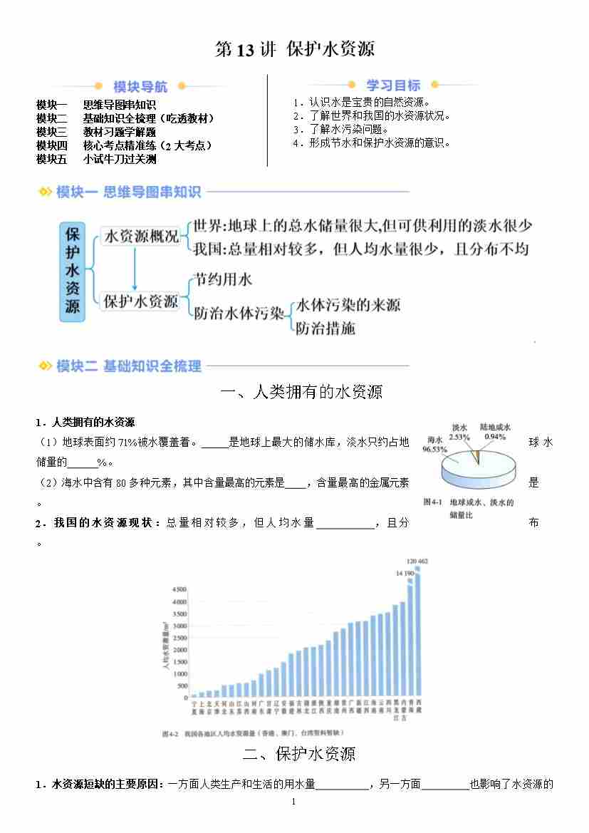 第13讲 保护水资源(原卷版)